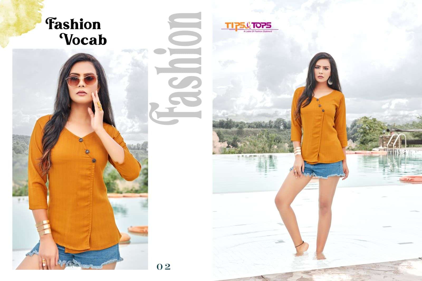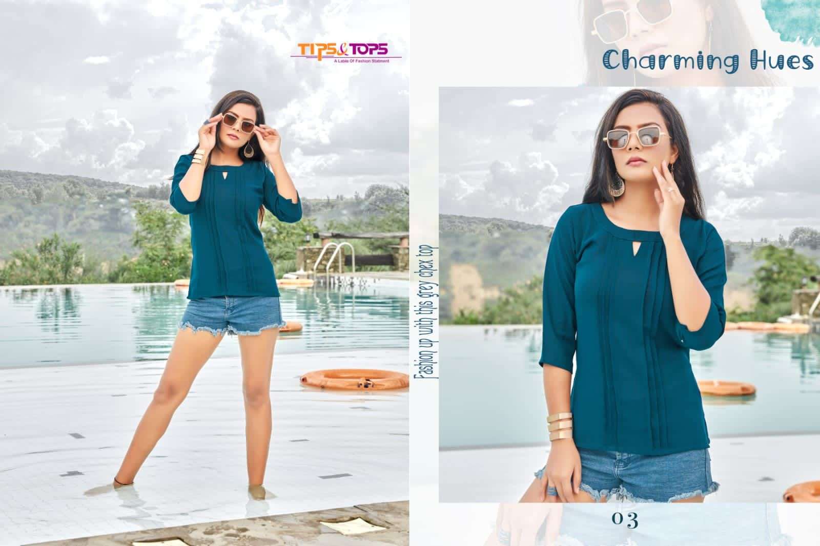 TIPS & TOPS Catalouge Name : 💃 PEPE TOPS Vol 02 💃 Fancy Short Tops with Extraordinary Patterns Fabrics : Gentleman Rate : 315 + GST 5% |