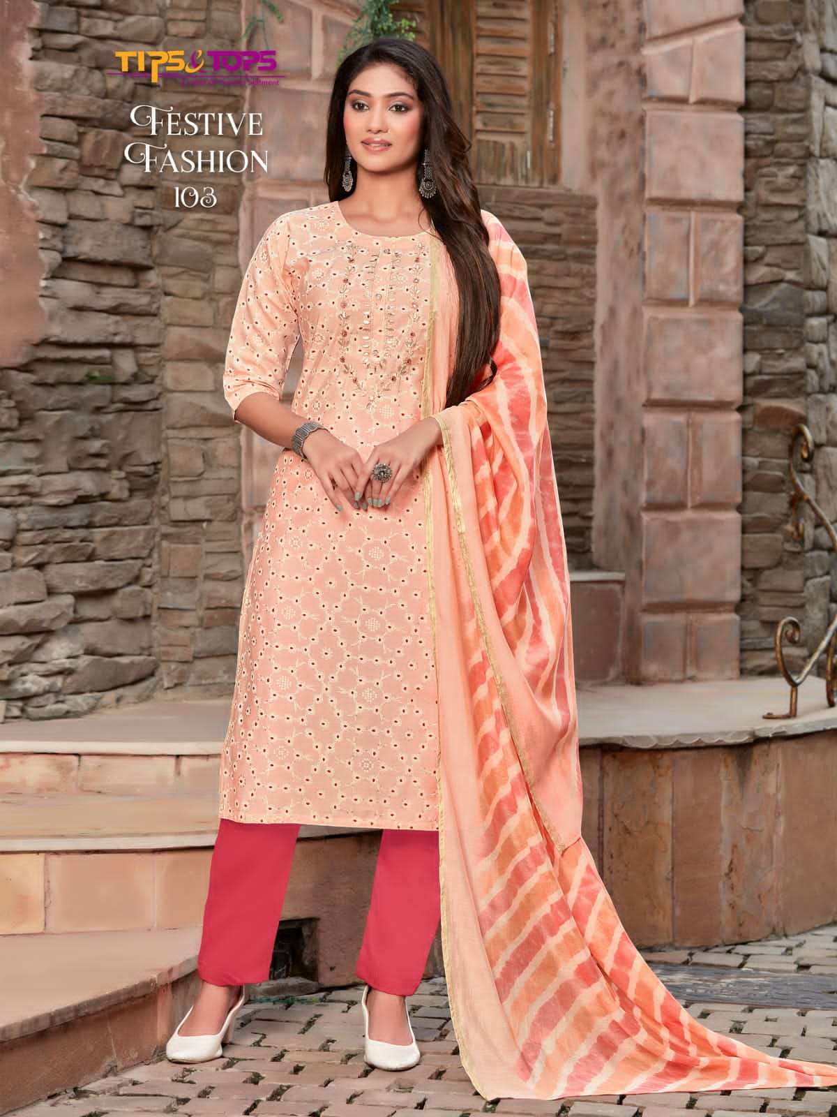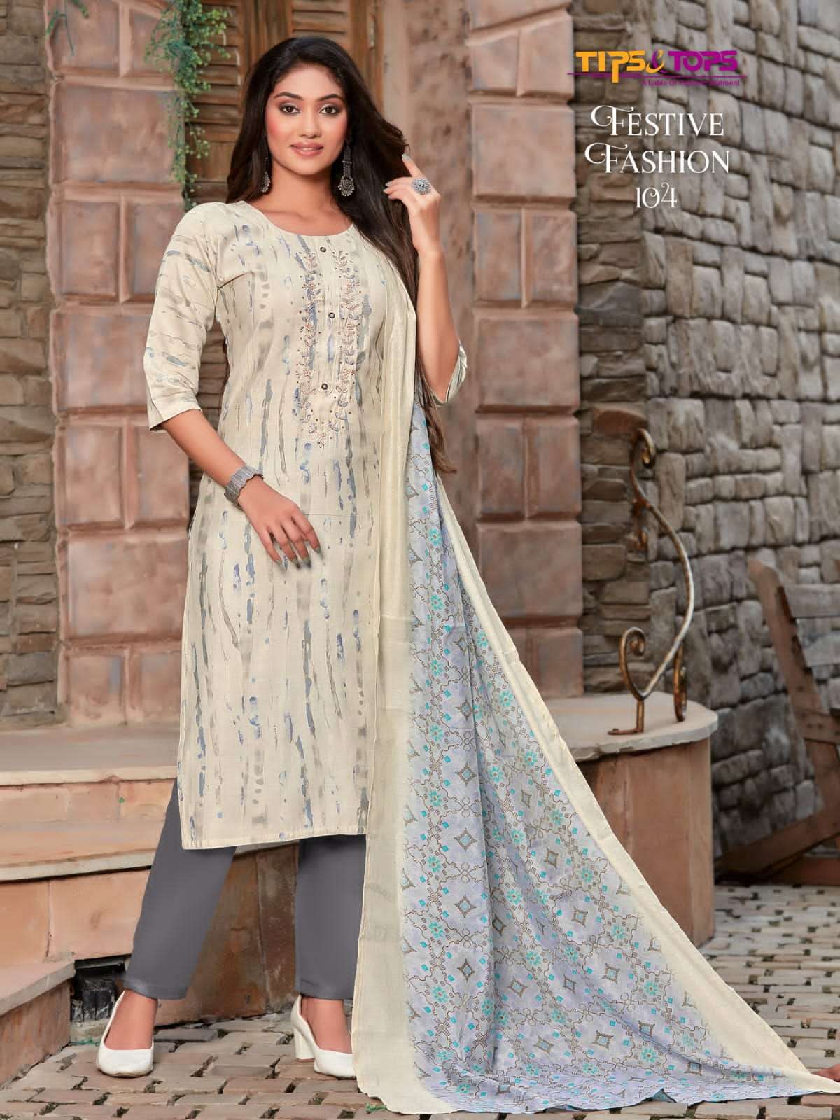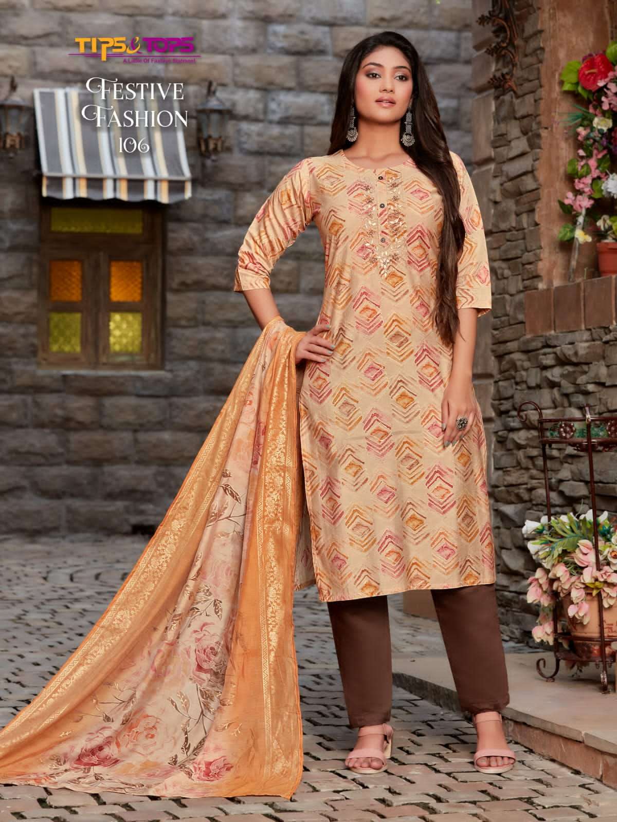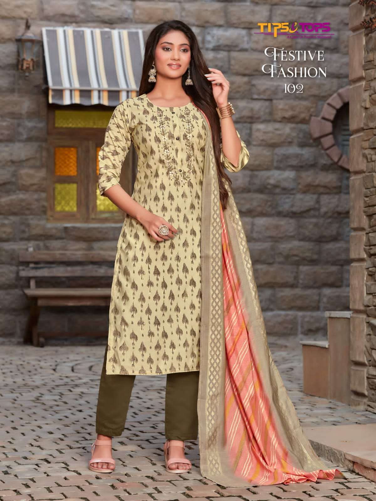 TIPS & TOPS Catalouge : 💃 FESTIVE FASHION 💃 Fancy 3Pc Set Collection Fabric in Top : Premium Chanderi Modal Foil Print Rate : 1095 + GST 5% TIPS & TOPS 😊 |