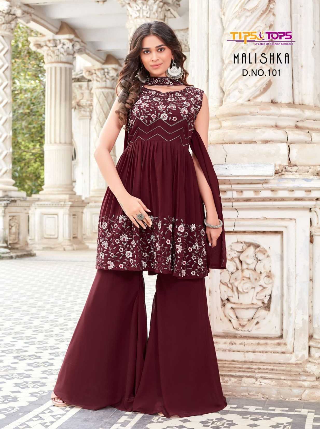 tips & tops present malishka wedding wear readymade sharara salwar kameez
