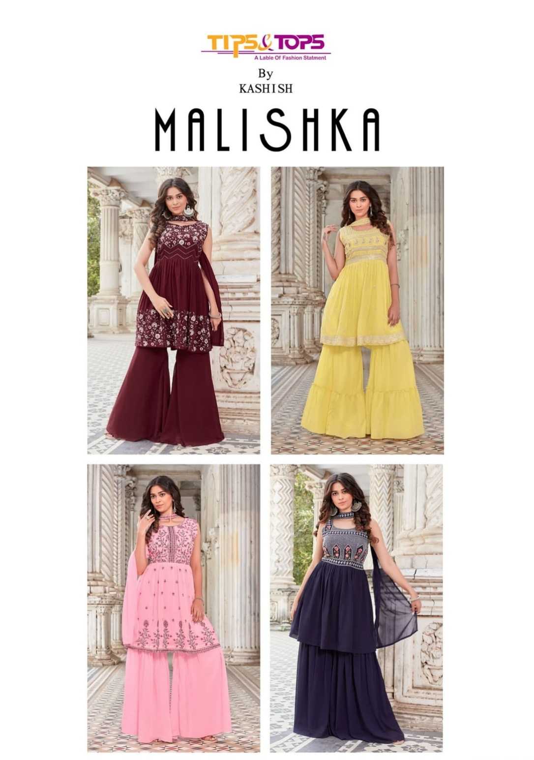 👏🏻👏🏻 Catalouge Name : 💃 MALISHKA 💃 Festive Wear Fancy Readymade Dress with Sharara Fabrics : Fancy Premium Georgette with Inner No.of designs : 4