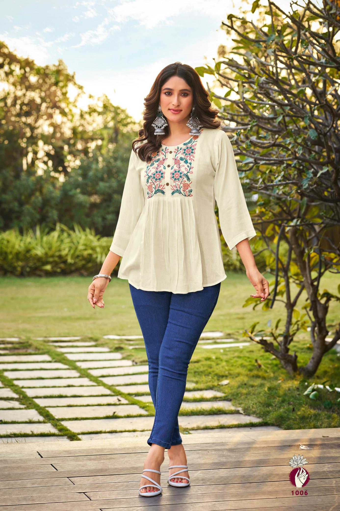 TIPS & TOPS Catalouge Name : 💃 SANA Vol 04 💃 Fancy Short Tops Fabrics : Reyon Wrinkle Rate : 380+ GST 5% |