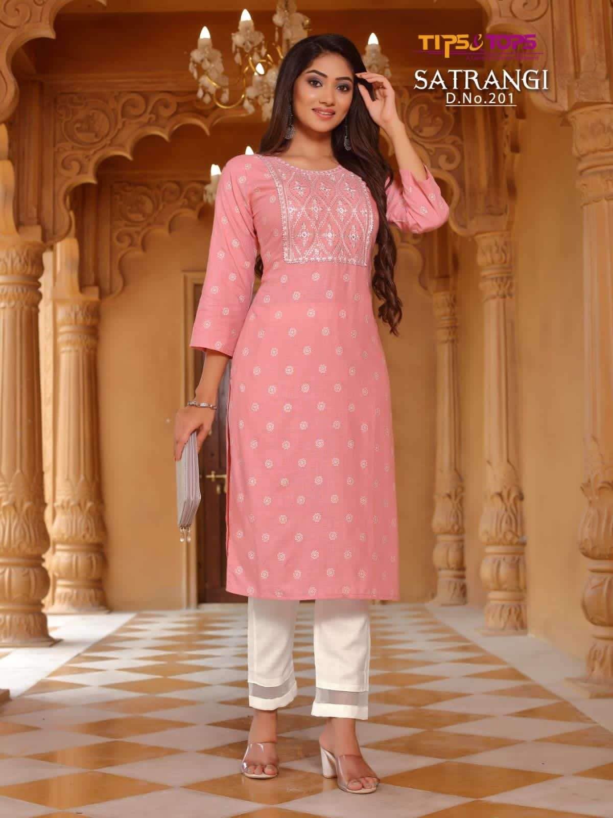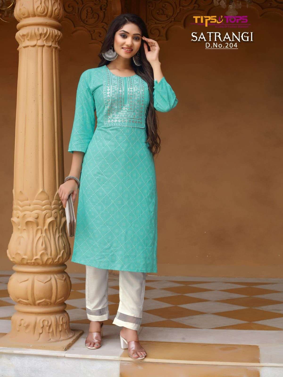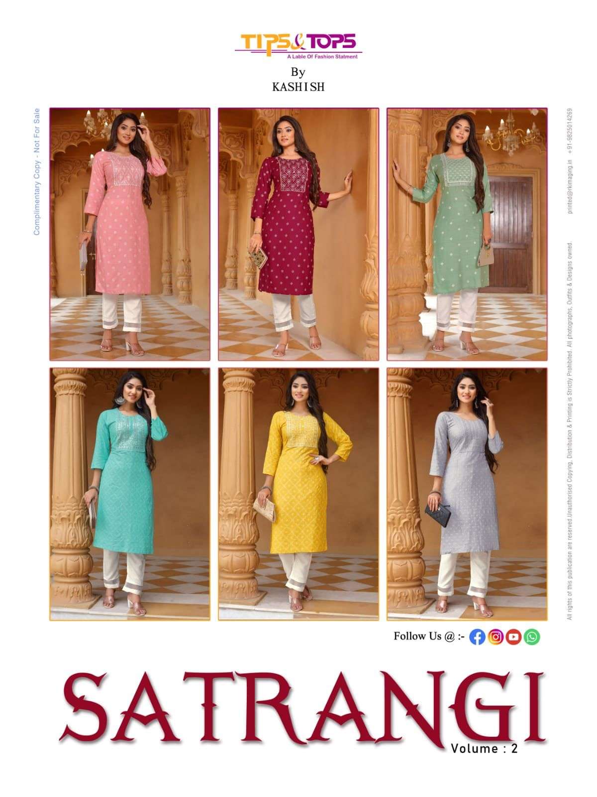 Namaste 👏🏻 TIPS & TOPS Catalouge : 💃 SATRANGI Vol 02 💃 Party Wear Heavy Kurti With Pant Fabrics : Fancy Reyon Slub Print Rate : 535/- TIPS & TOPS 😊 |