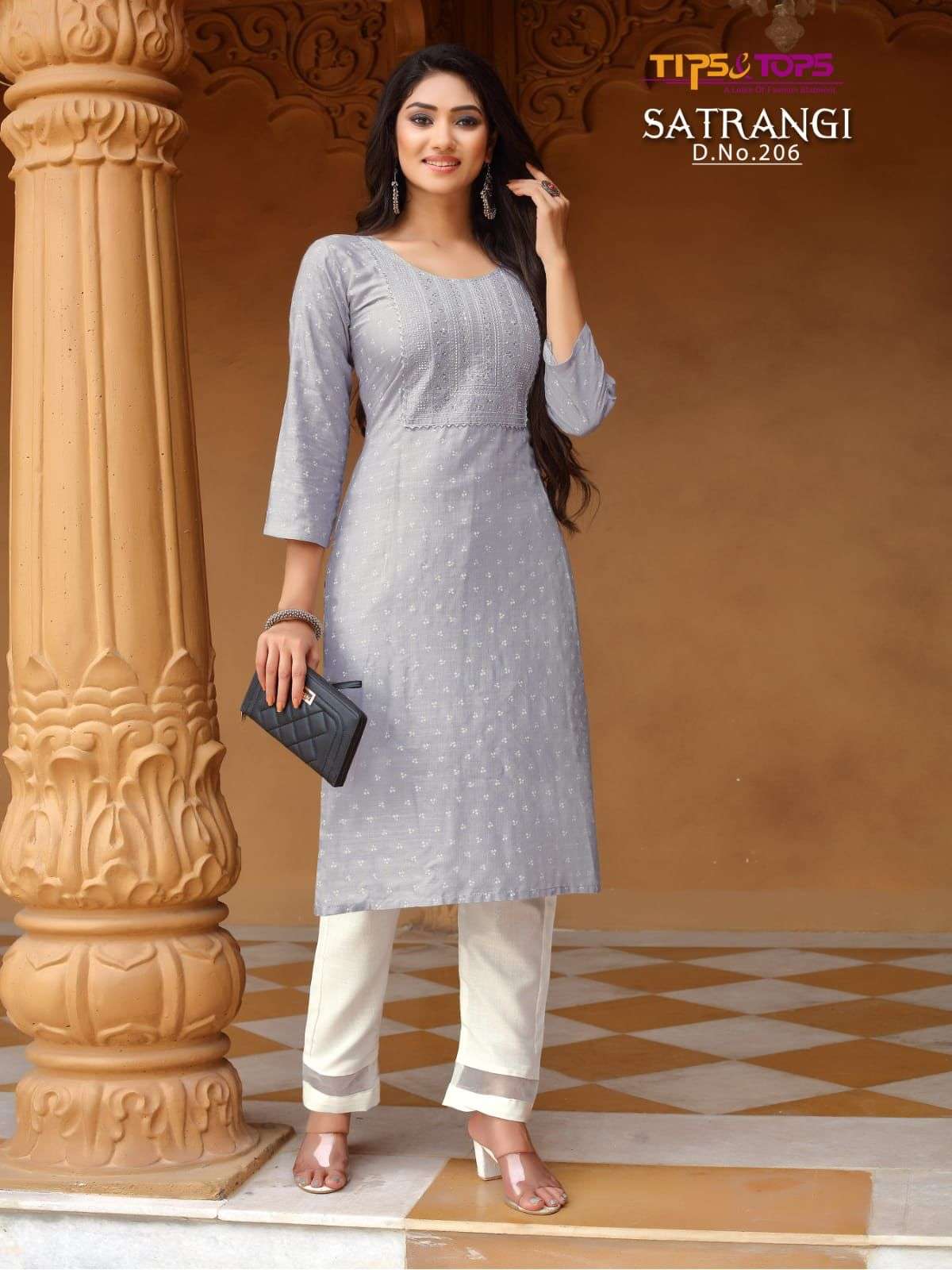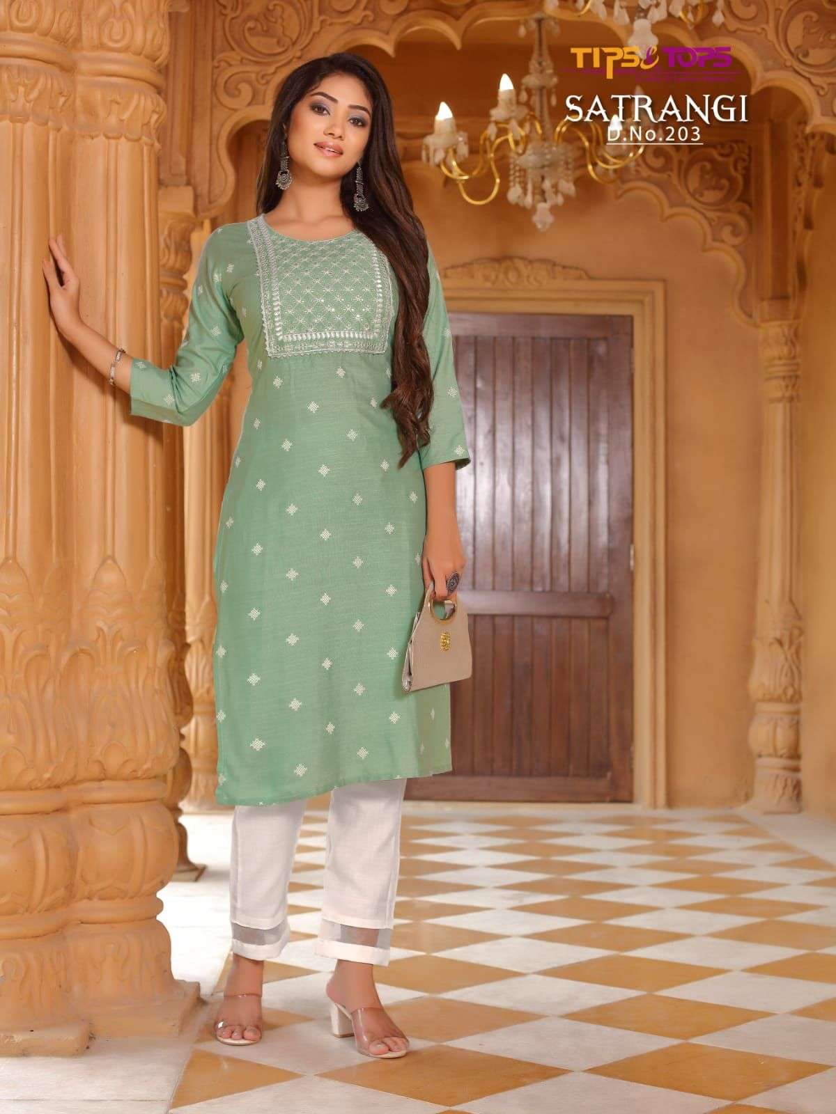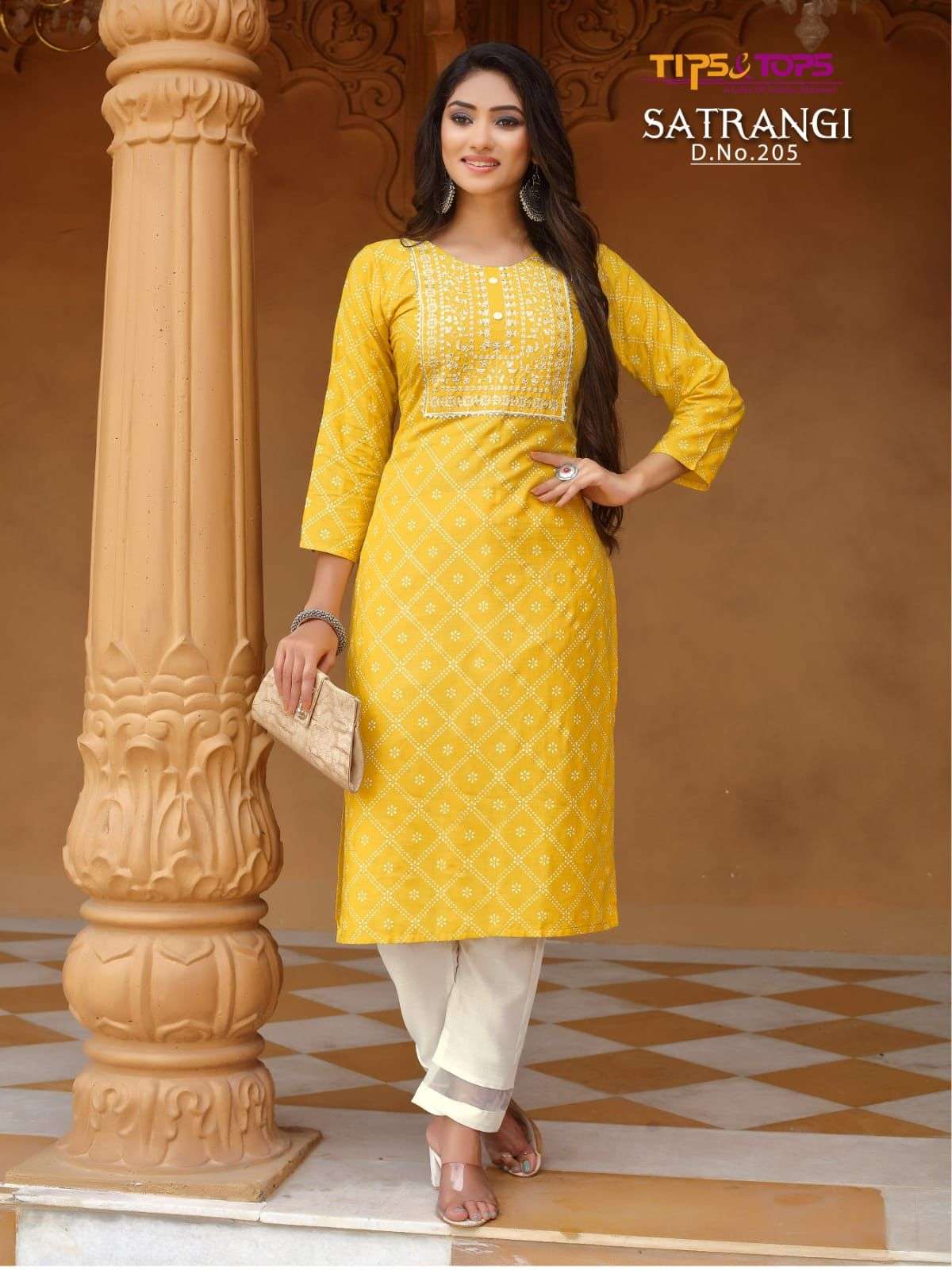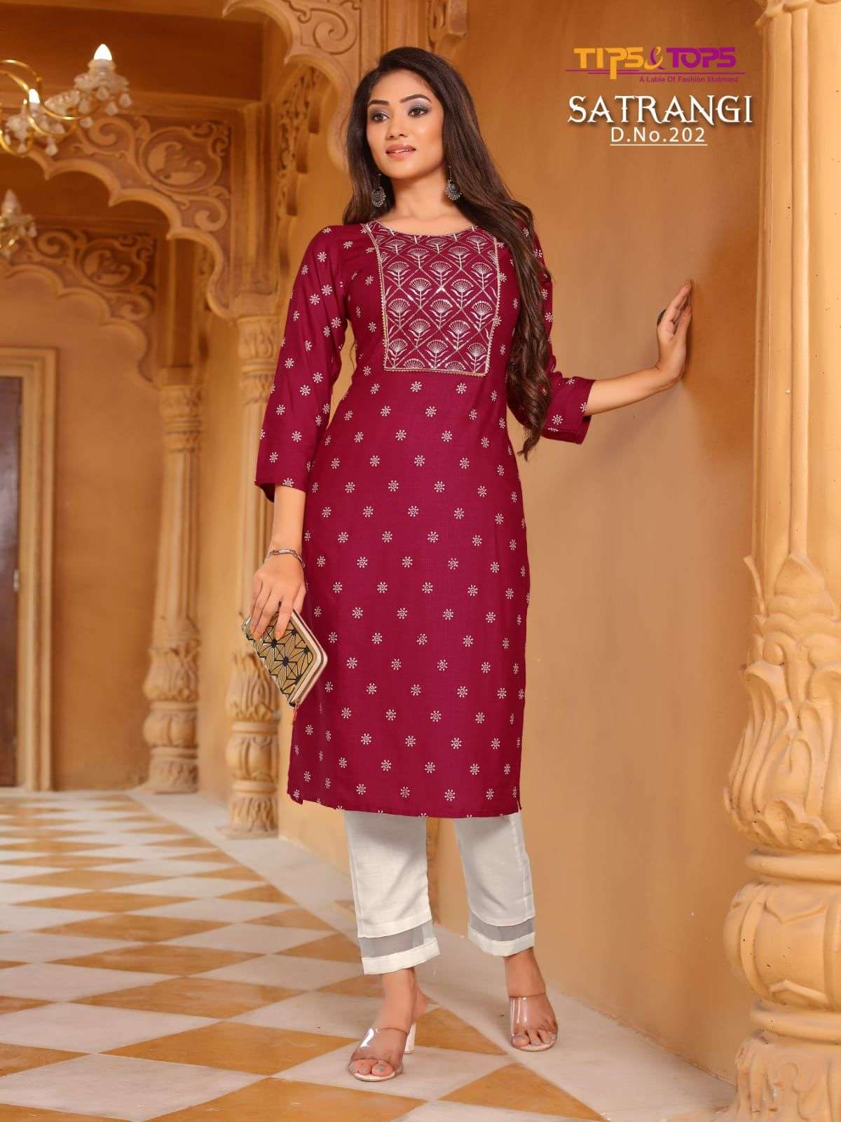 Namaste 👏🏻 TIPS & TOPS Catalouge : 💃 SATRANGI Vol 02 💃 Party Wear Heavy Kurti With Pant Fabrics : Fancy Reyon Slub Print Rate : 535/- TIPS & TOPS 😊 |