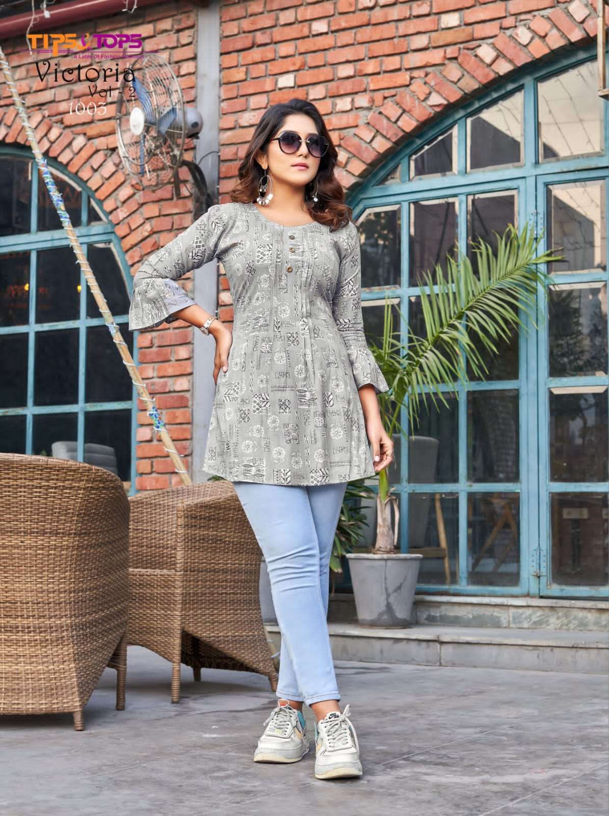 TIPS & TOPS Catalouge Name : 💃 VICTORIA vol 02 💃 Western Short Kurtis Fabrics : Heavy Reyon Capsule Print Rate : *325/- per pcs *+ GST 5% extra