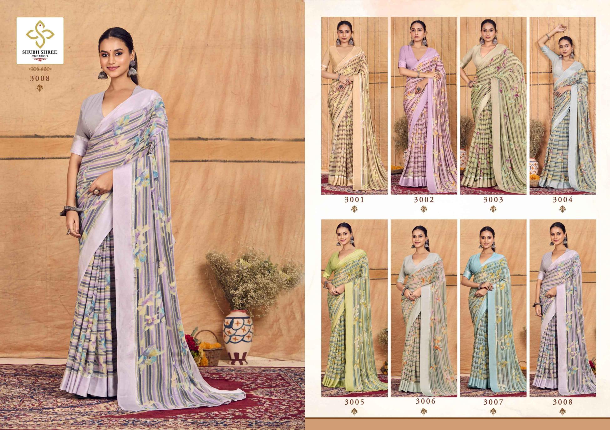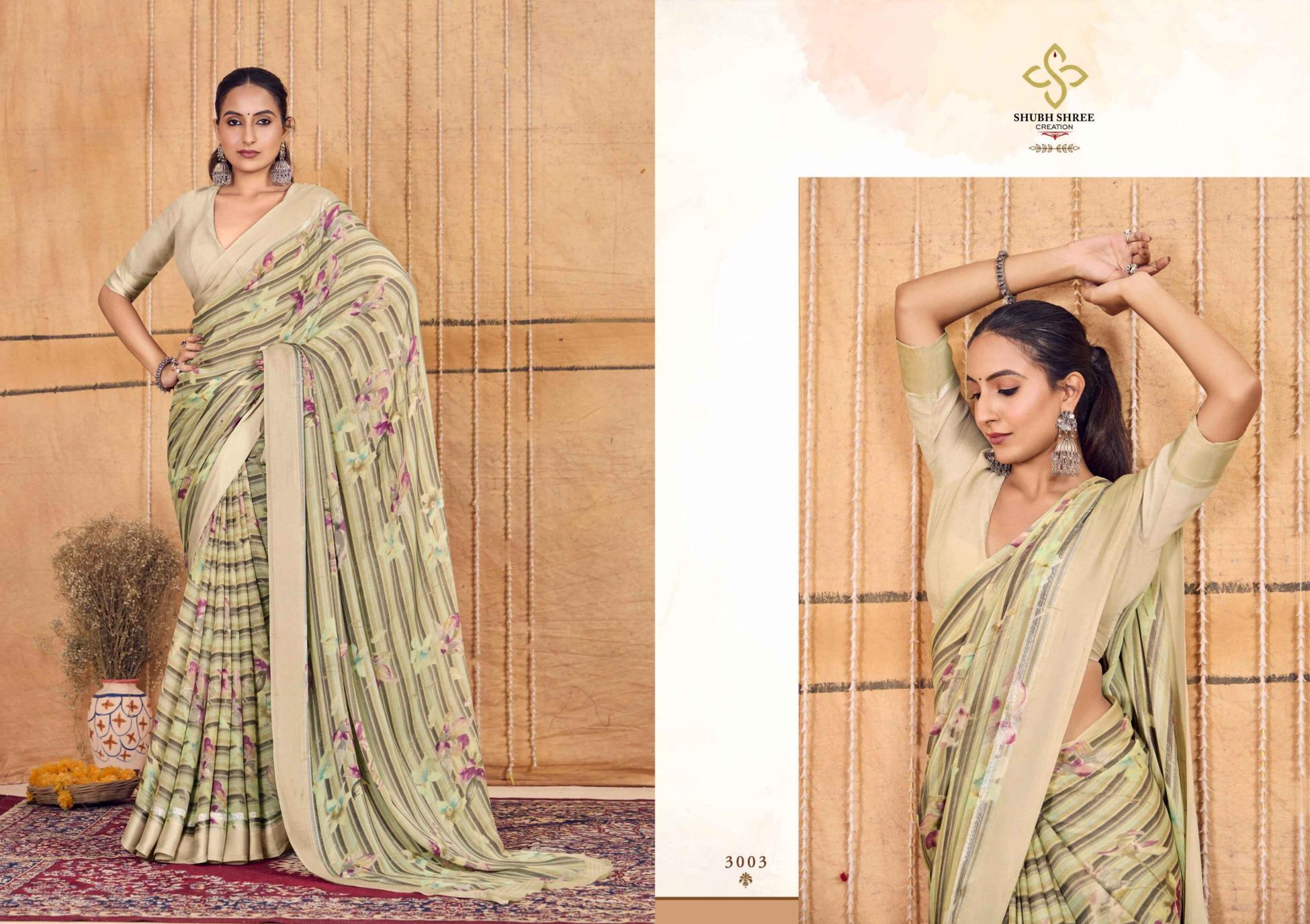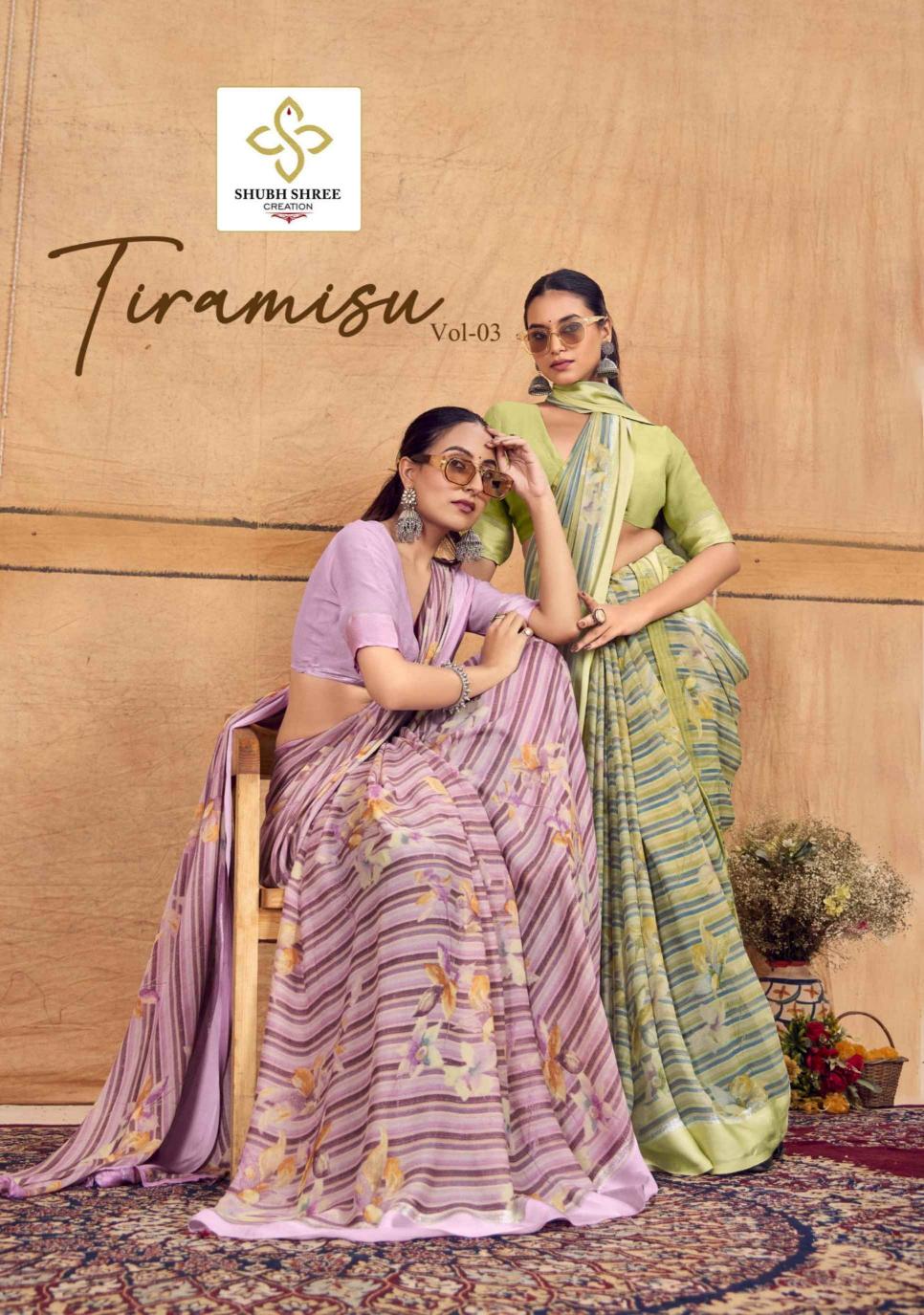 tiramisu vol 3 by shubh shree creation unique print chiffon saree