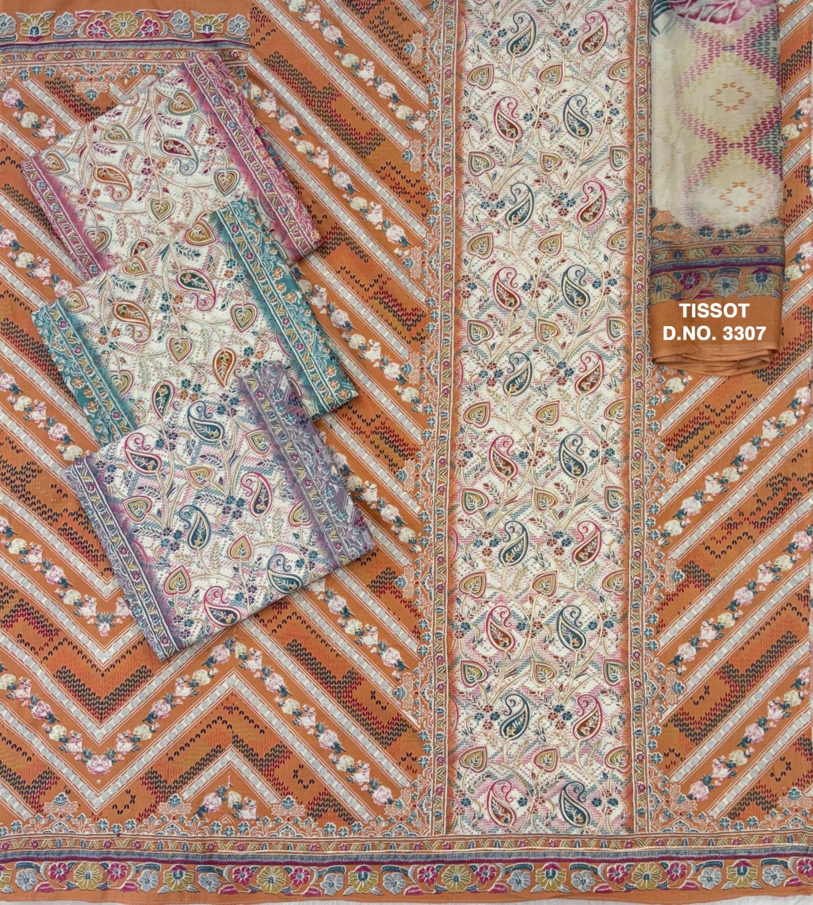 tissot 3307 by bipson print sweet unstitched 3pcs kurta set
