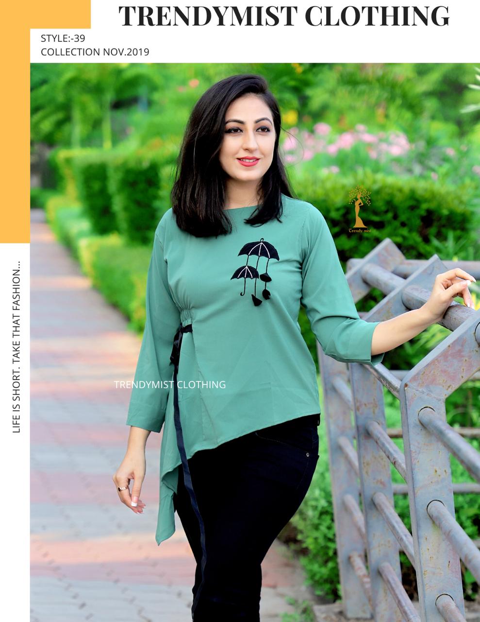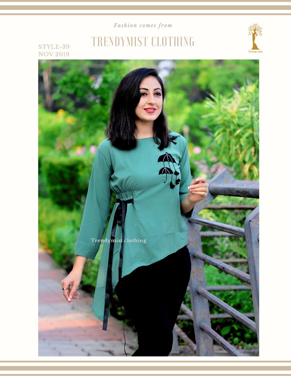 Dear Customers, Welcome to Trendymist Western wear We are introducing Trendymist new western tops catalog Catalogue:- Trendymist Style-39 cloth :- imported stretchable tokko fabric ✅concept :-one side umbrela design with embroidery side knot symmetrical top Length :-Left:-21.5 inch Right:-33inch (Symmetrical) Size:-S-36 M-38 L-40 RATE-599/-₹+$ per piece 5 COLOURS  : Dispatch :-ready to ship start Happy selling... |