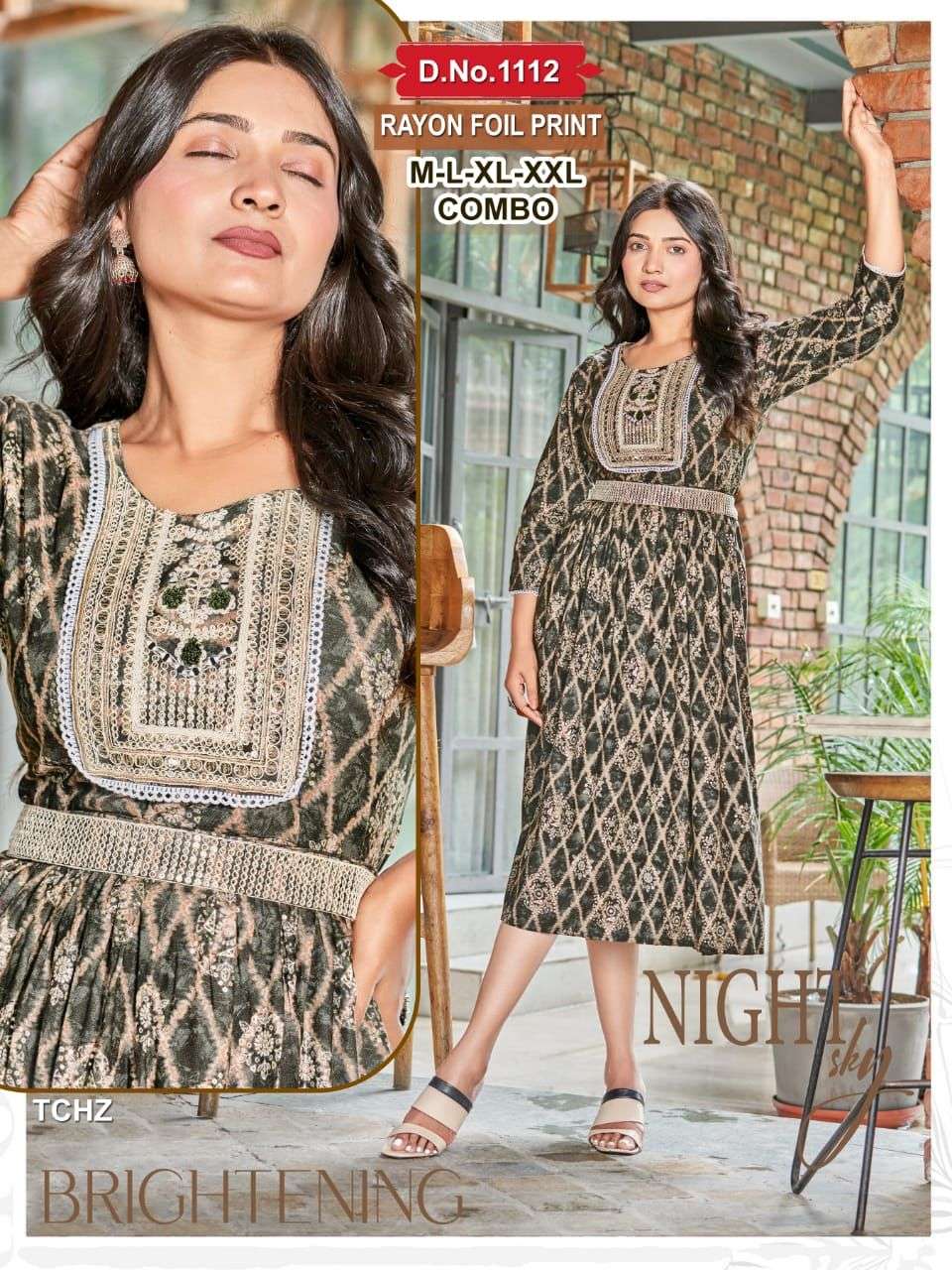 TRENDY 1112 COMBO RAYON FOIL PRINT COMBO KURTI SET WHOLESALER BEST RATE