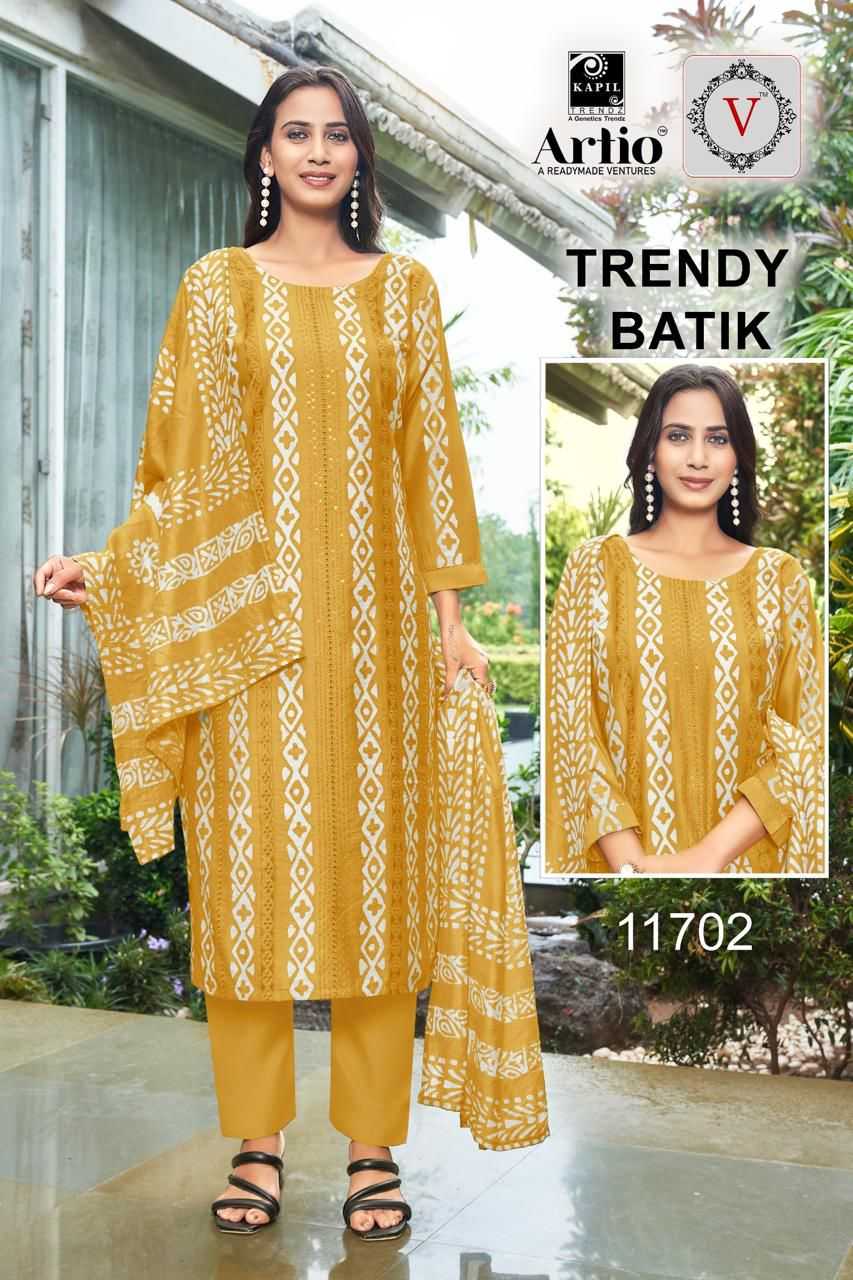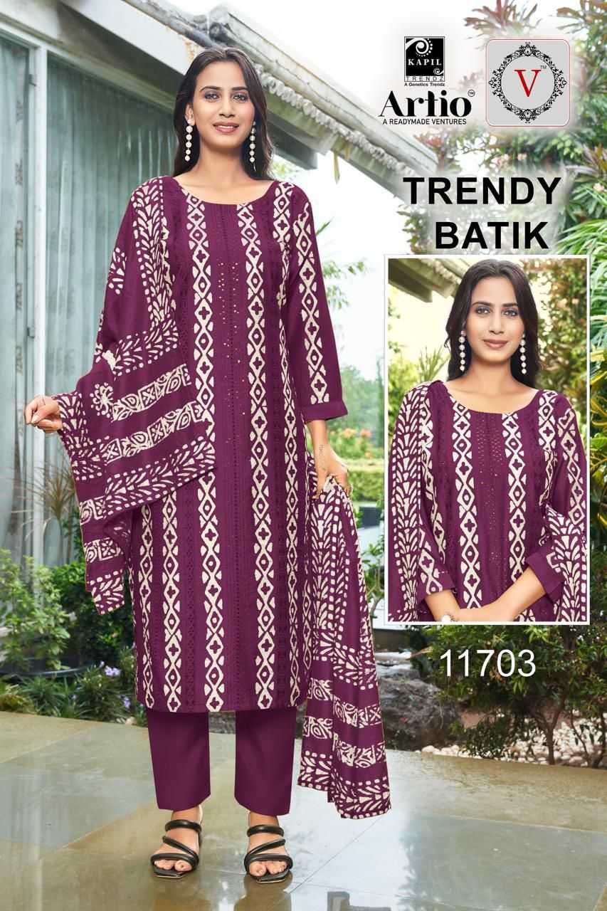 trendy batik by veda kapil trendz classic look full stitch combo set 3pcs dress