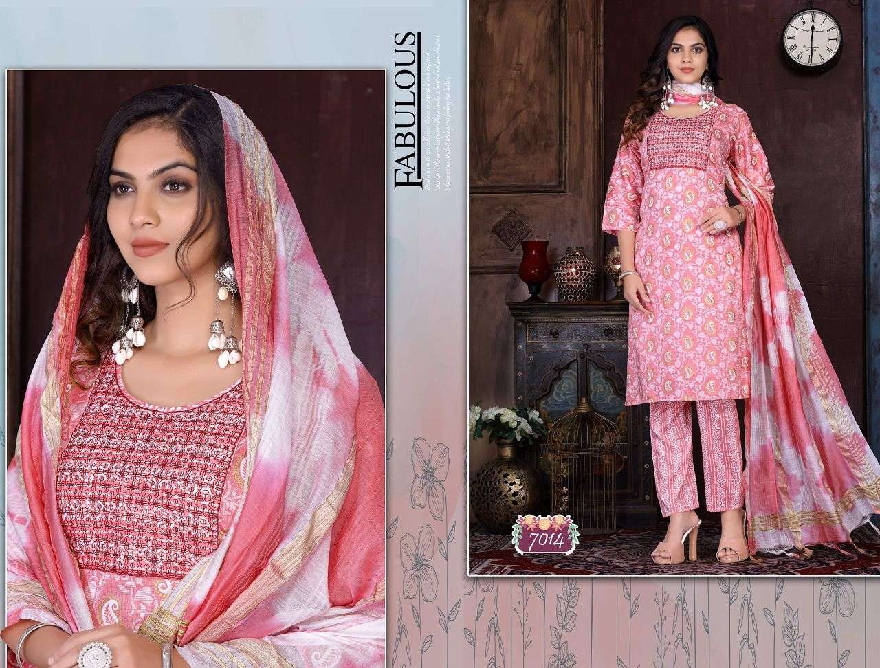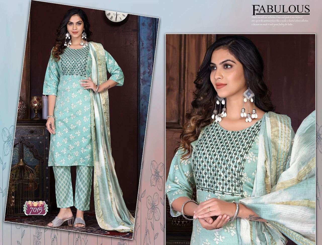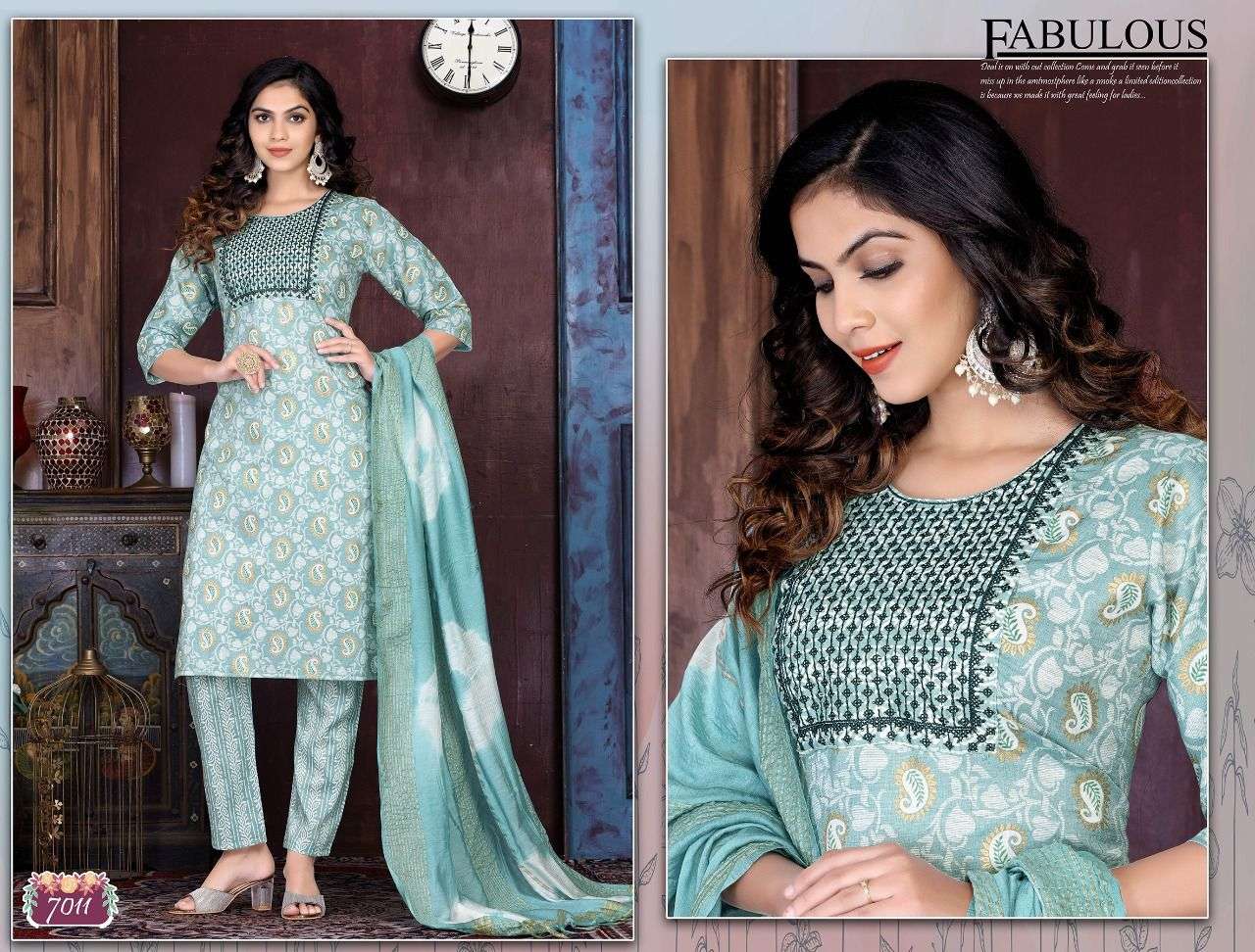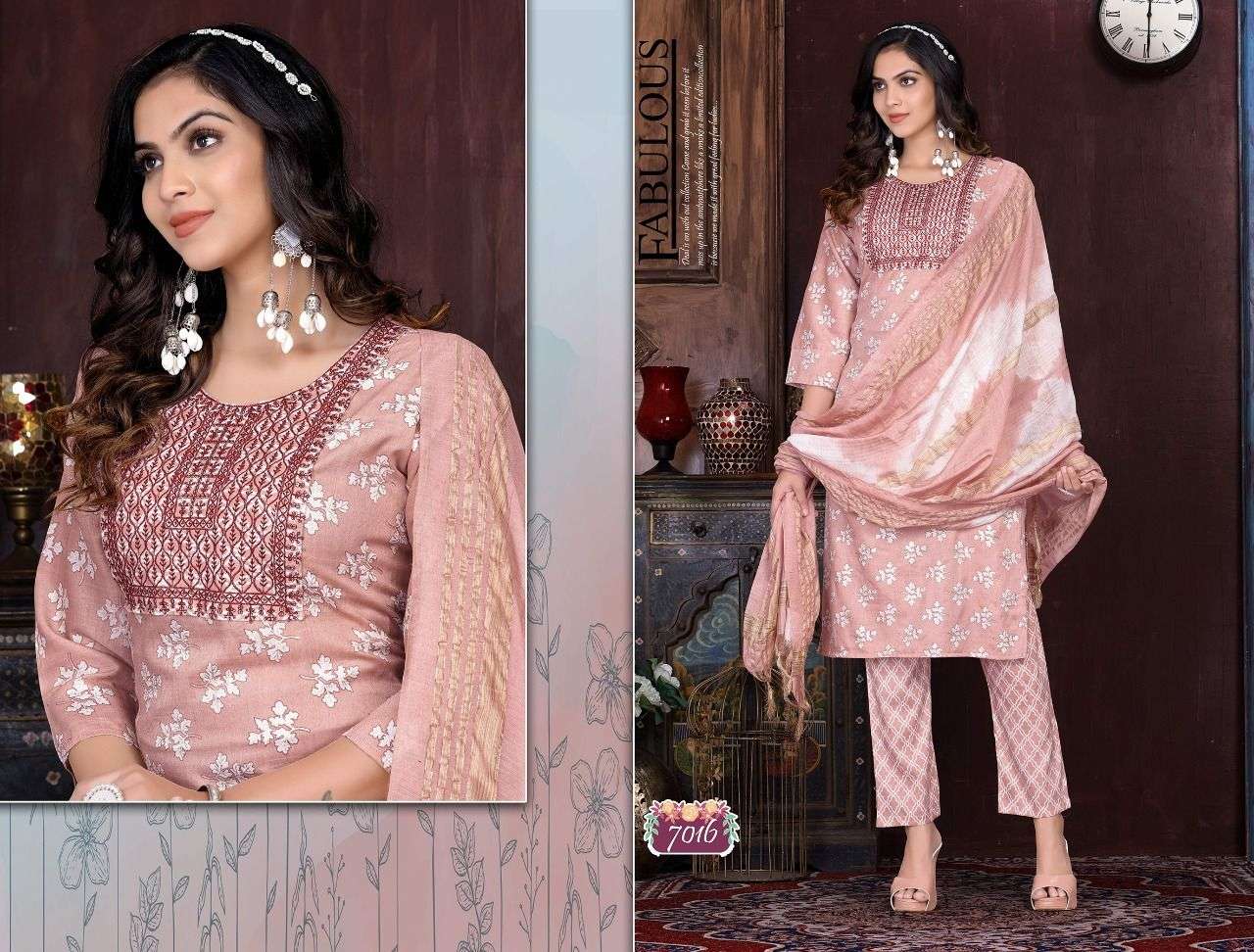 Name :-. Trendy Nykaa Vol.1 Three piece Catlouge Fabrics:- Top:-. Capsule Foil Designs :- 06 Size:- L. XL. 2XL 3XL LENGTH:- TOP :- 44 INCH Pattern:- Silia pattern STYLE:- Straight kurta, Rate :-. 699/- |