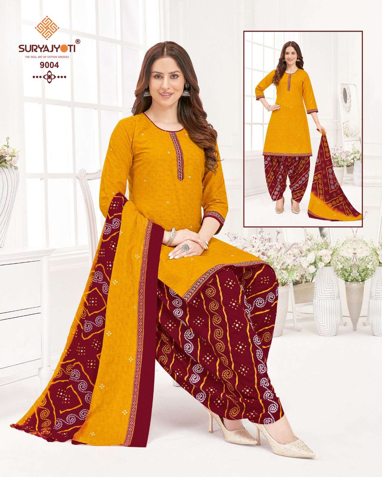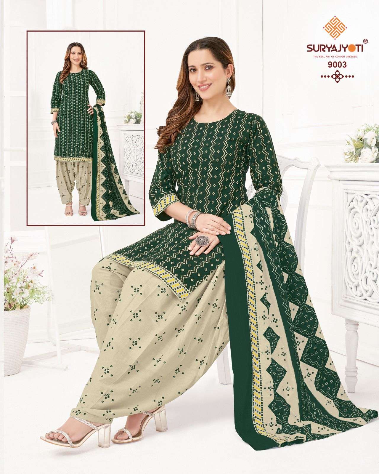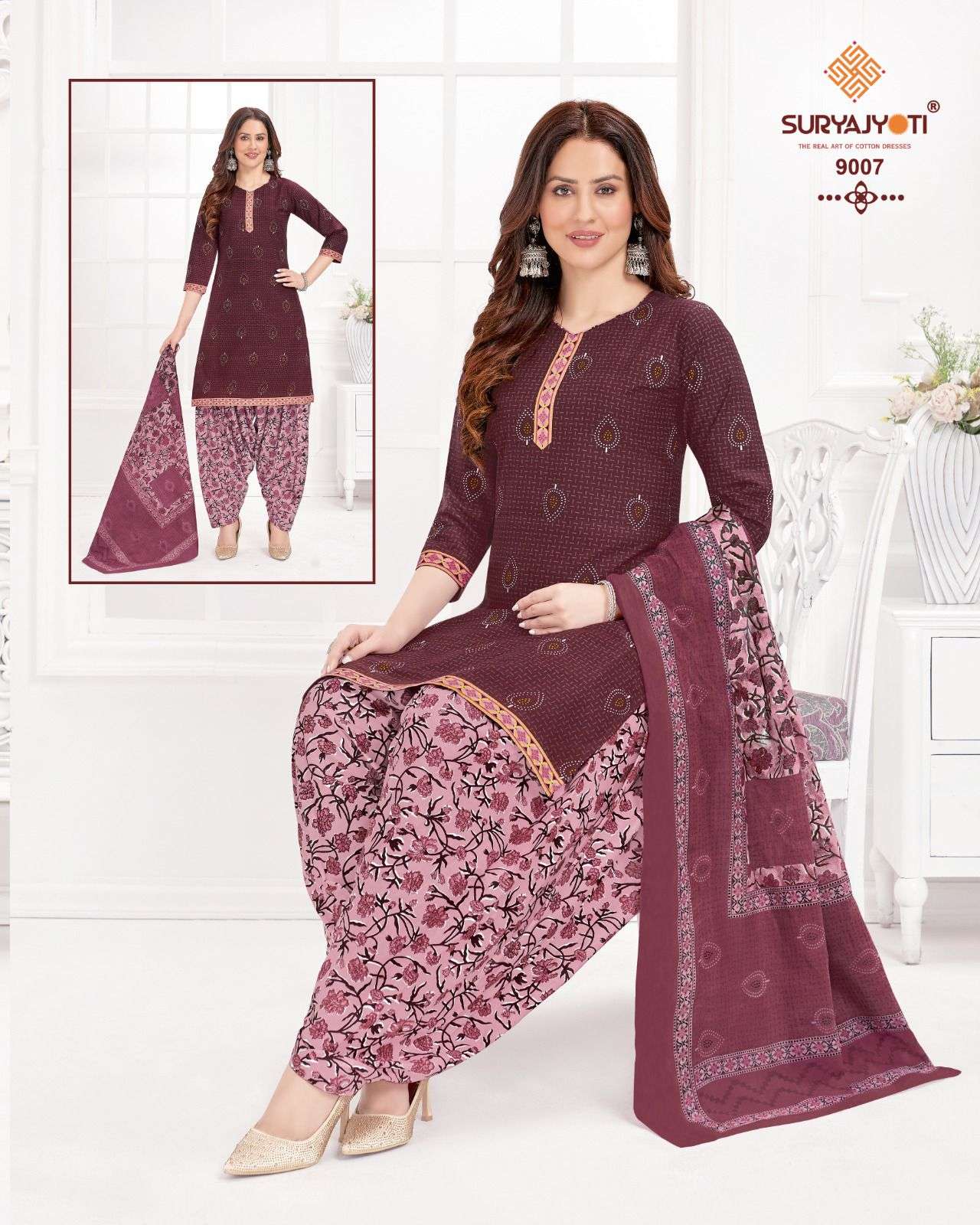 trendy patiyala vol 9 by suryajyoti cotton printed unstitch ladies suit wholesaler
