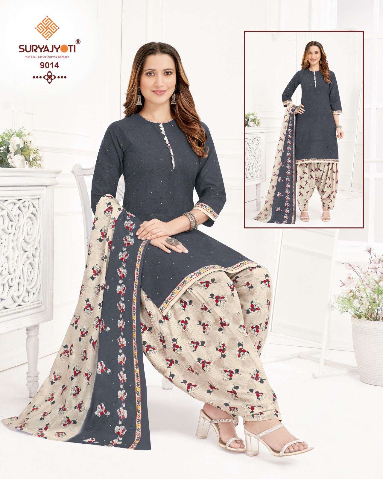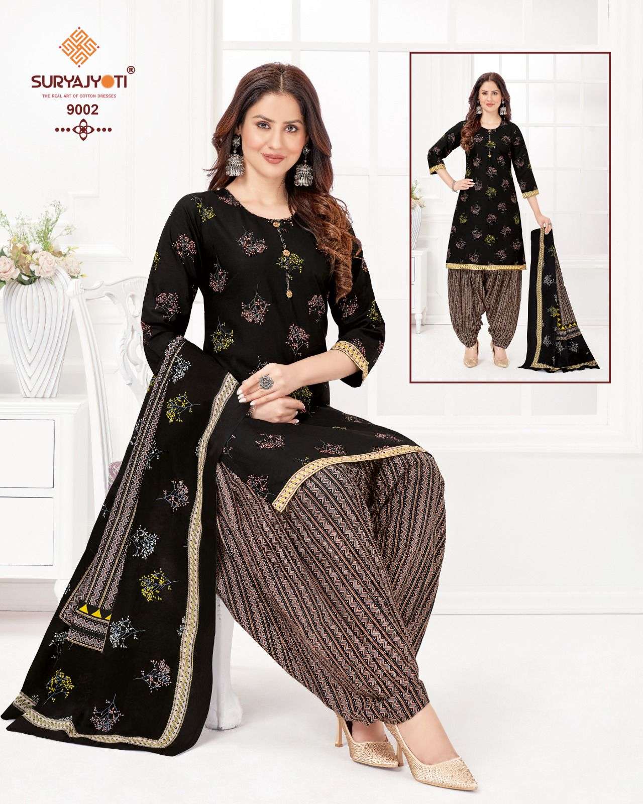 DEAR CUSTOMER WELCOME TO SURYAJYOTI LAUNCHING OF SURYAJYOTI’S NEW PATIYALA CATALOG 📕CATALOGUE:- 👗FABRIC:- TOP BOTTOM DUPATTA ALL COTTON CUT:- 2.0-2.5-2.25 RATE: HANGER PACK:- 435 Always with you...👍 |
