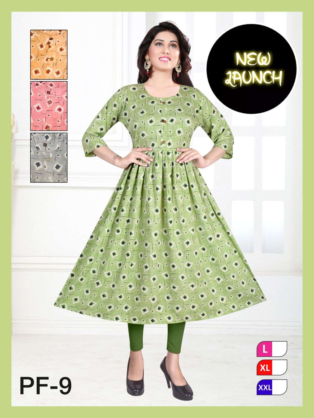 TRENDY PF-9 BSY LONG PRINTED GHERA KURTI four colour matching