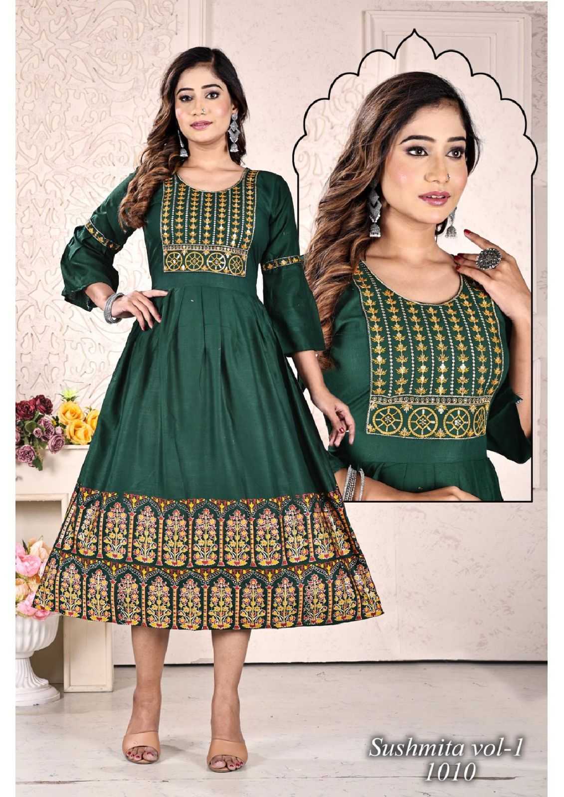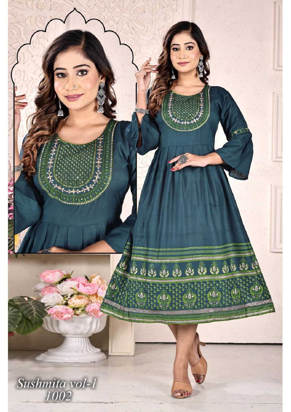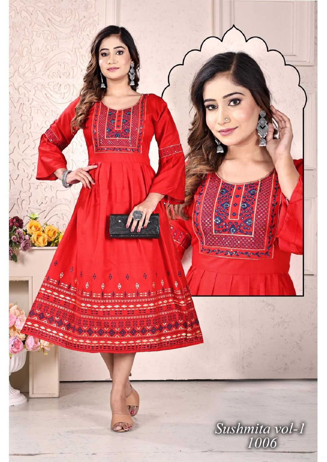 TRENDY SUSHMITA VOL.1 RAYON SLIB DAMAN PRINT GHERA WITH CHOLI WORK