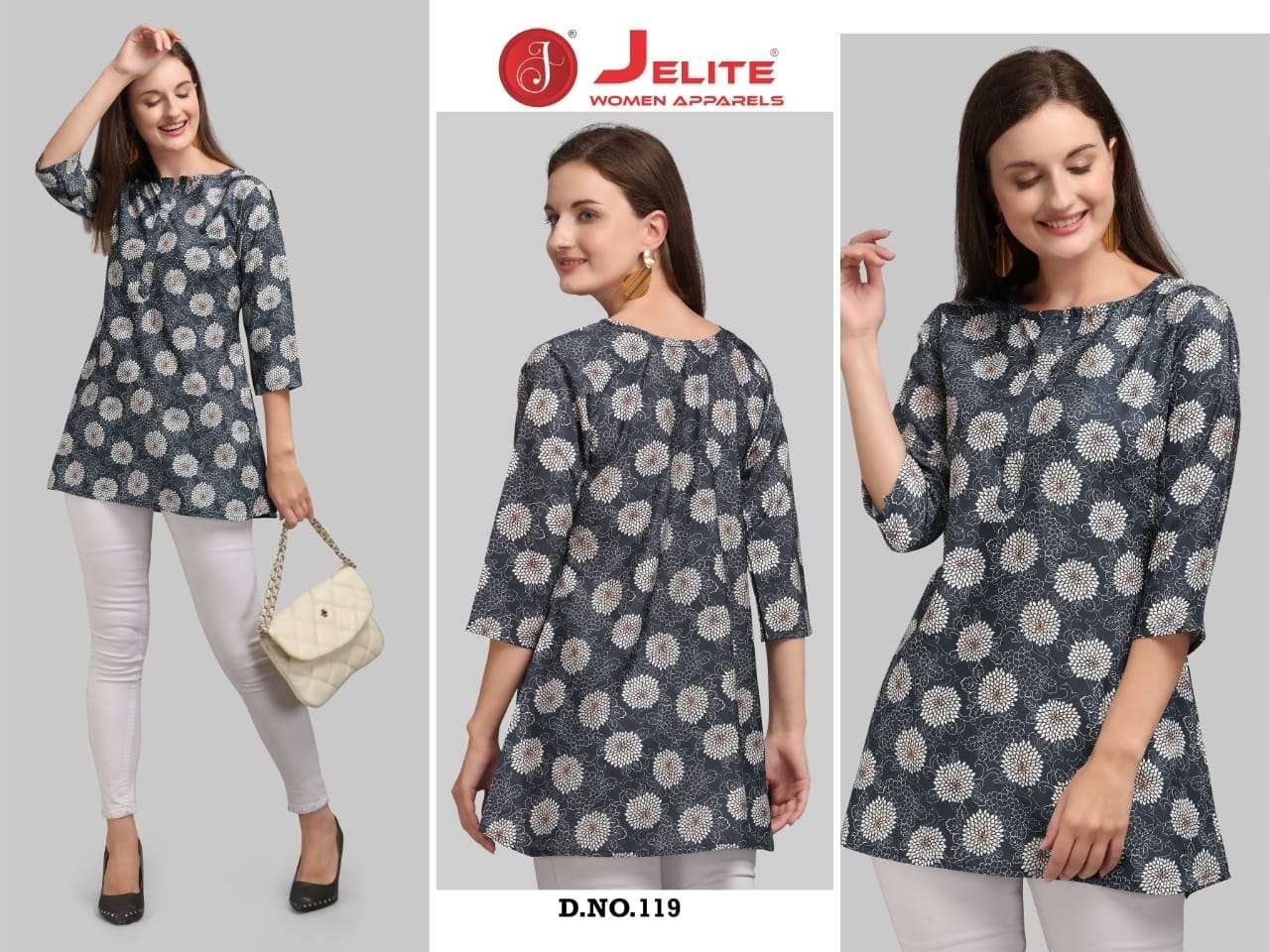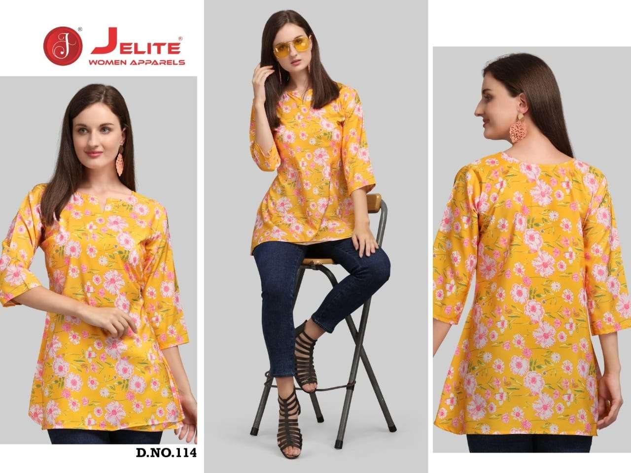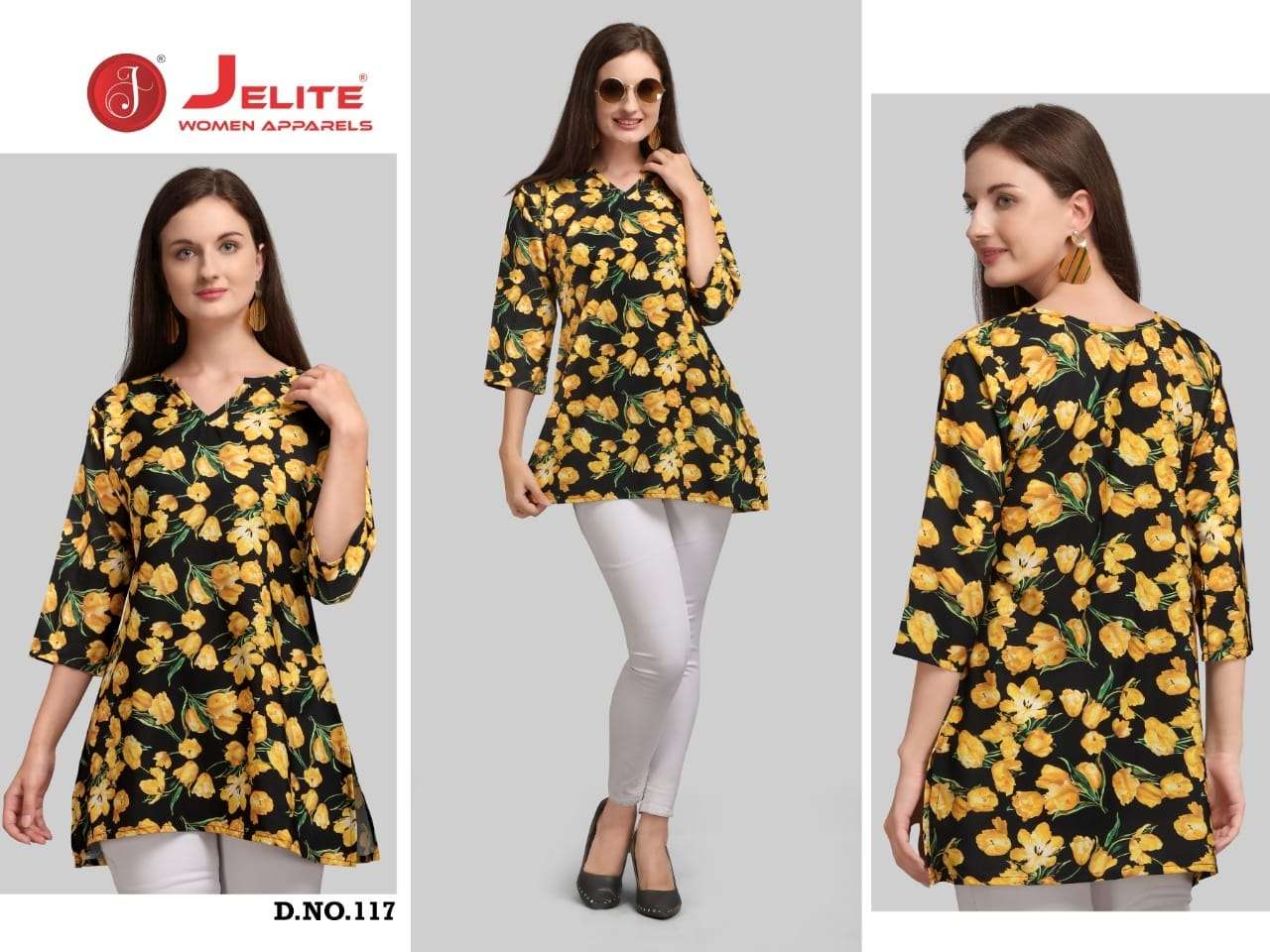 JELITE presents TRENDY TOPS Volume 3 Featuring the latest in-season collection of TOPS that will boost your personal style. Get your hands on these extra comfortable high-fashion trending pieces of Jelite Trendy Tops now! Fabric : Poly Crepe Digital printed Sizes :  L, Xl & Xxl  (40, 42 & 44) Designs: Total 8 designs Weight : 1.5 kg |