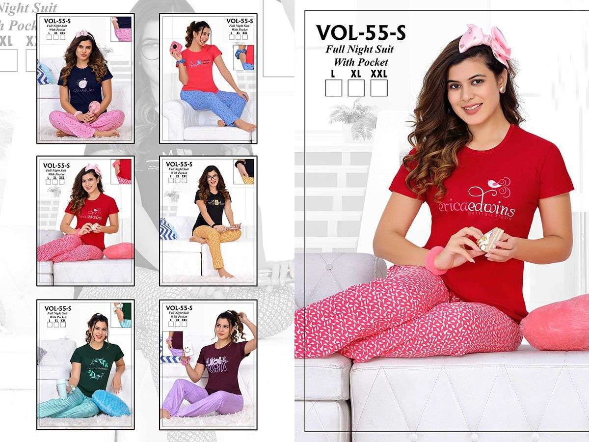 TRENDY VOL.55 S Heavy Shinker Hosiery Cotton Night Suits With Pocket CATALOG WHOLESALER BEST RATE