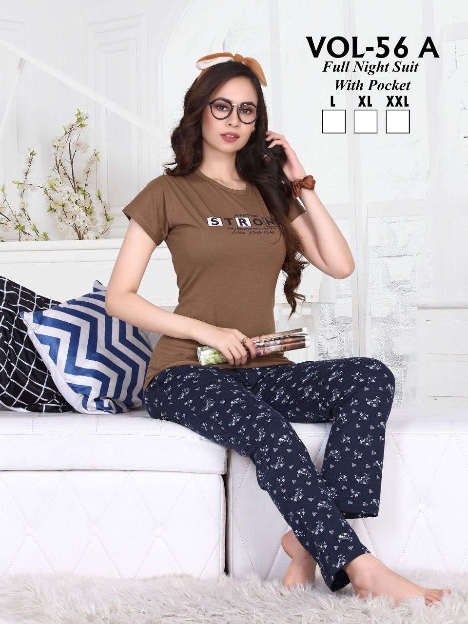 TRENDY VOL.56 A Heavy Shinker Hosiery Cotton Night Suits With Pocket CATALOG WHOESALER BEST RATE