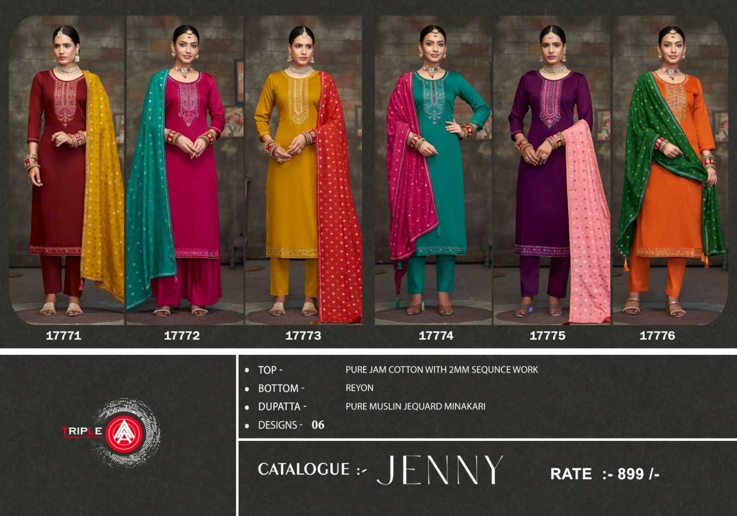 triple a jenny super hit design cotton sequence work 3pcs dress material