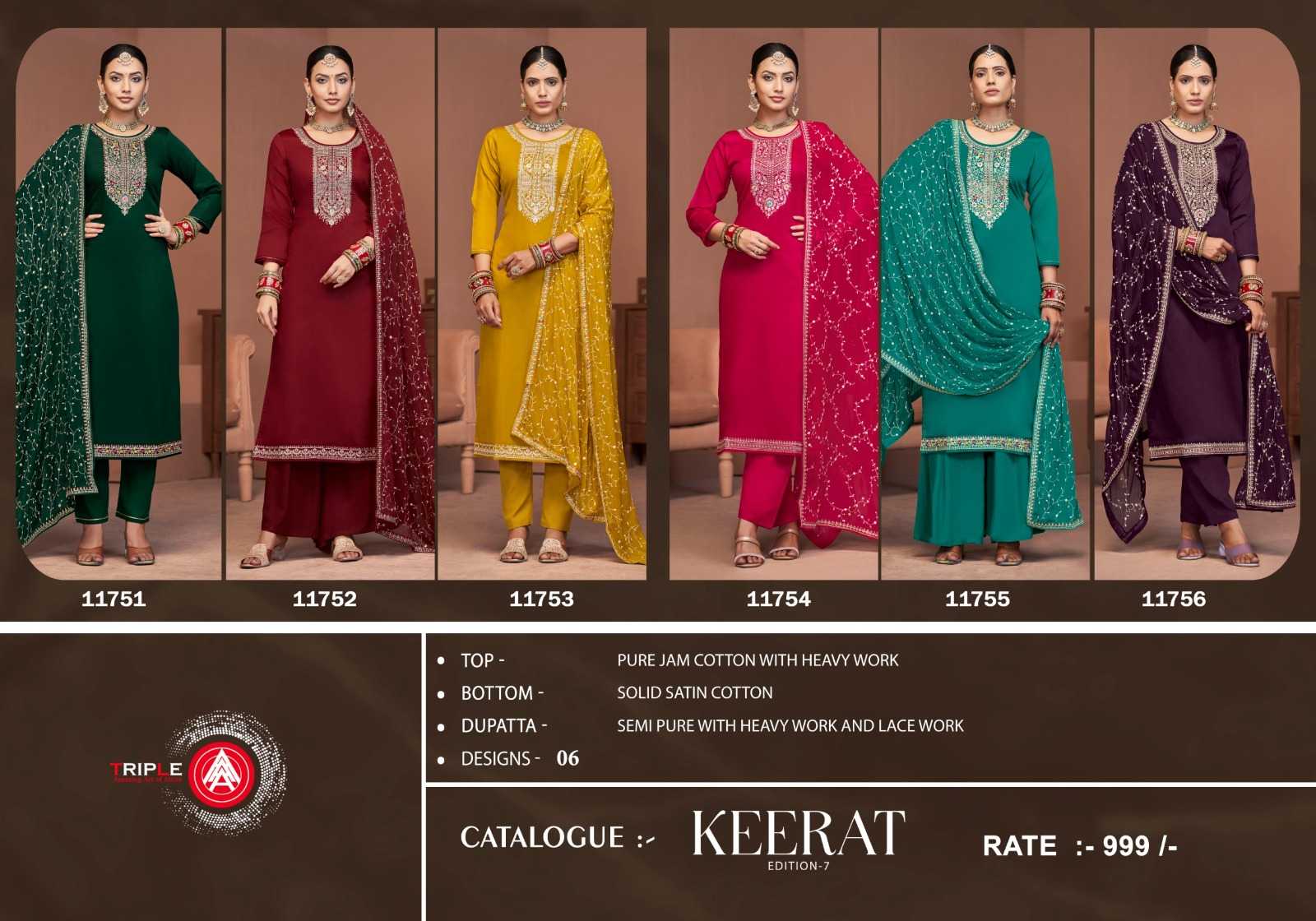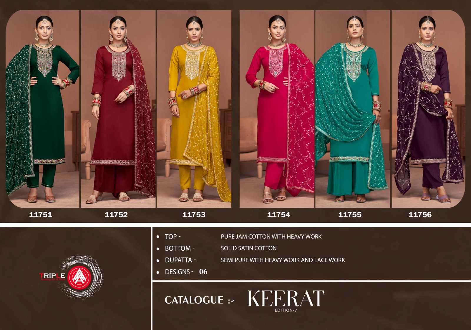 triple a keerat edition vol 7 function style jam cotton pakistani dress material