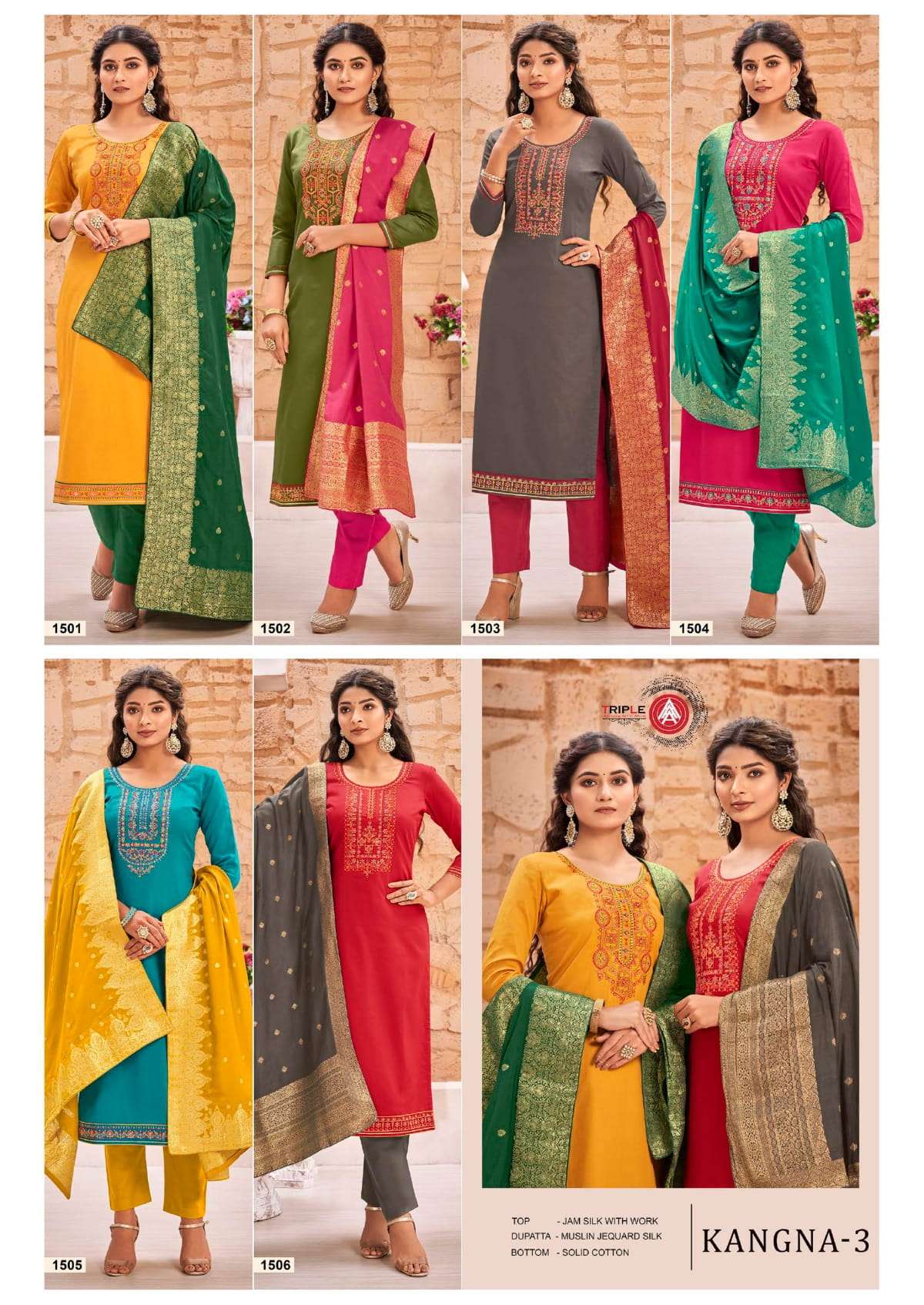 triple aaa kangna vol 3 jam silk ladies suits