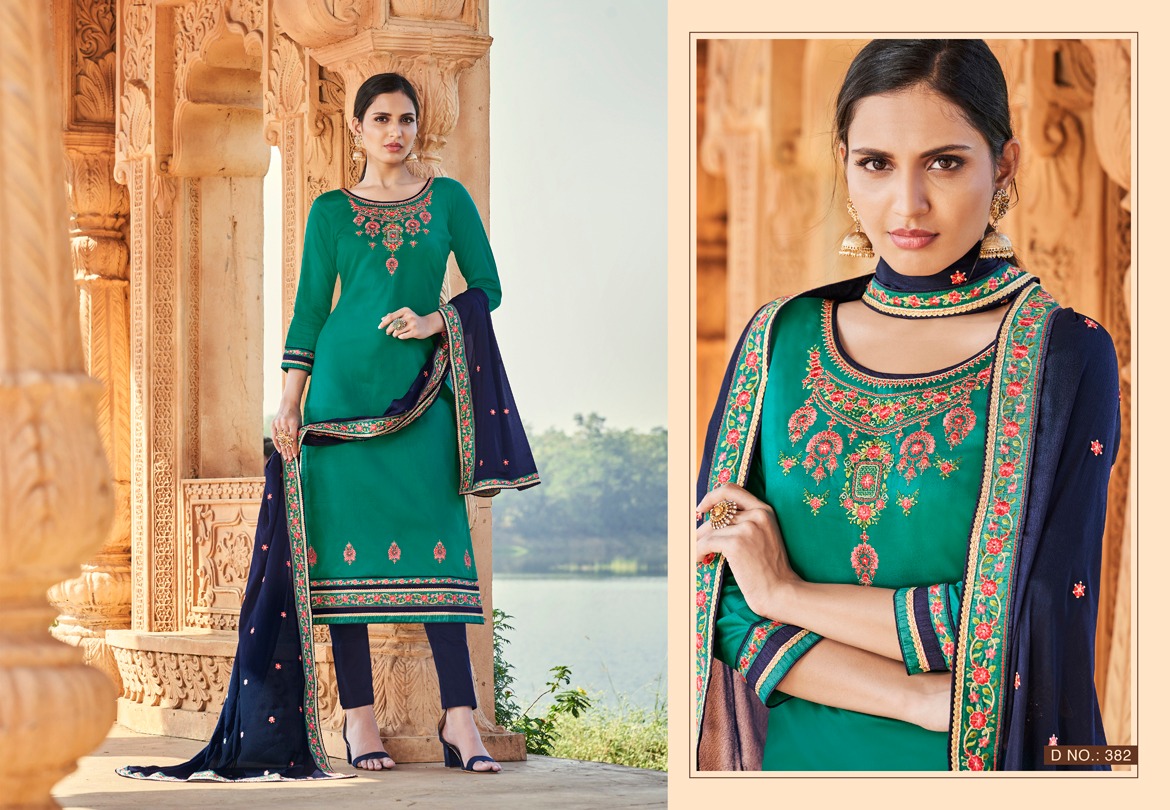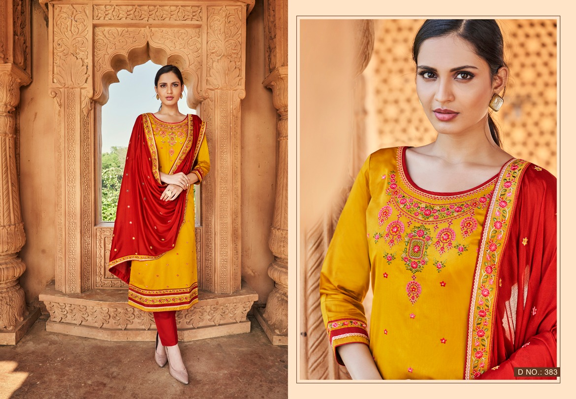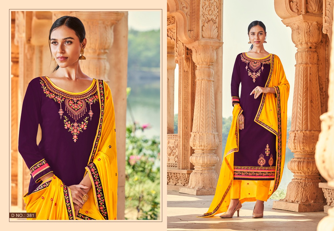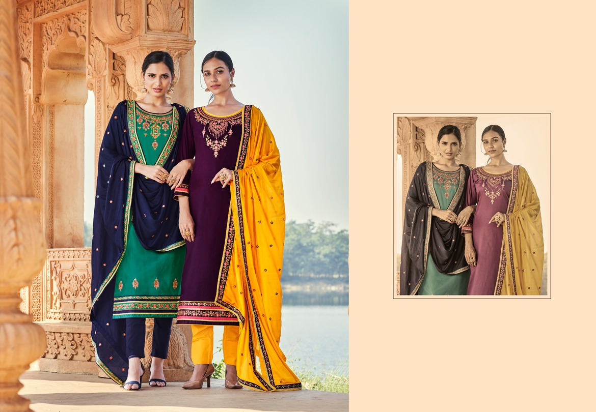 Catalog Name: KAJAL 🔸 Fabric Details 🔸 ▪Top:- Jam Silk with Embroidery Work ▪Bottom:- cotton satin ▪Dupatta:- Chinon work with Four Side less ▪Total Design:- 6 RATE-899/- Set to set ⏰Dispatching 5 to 6 days later |