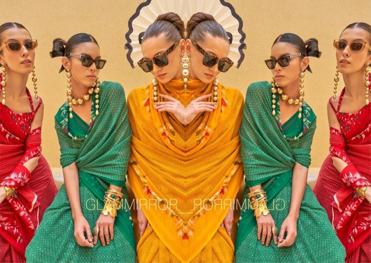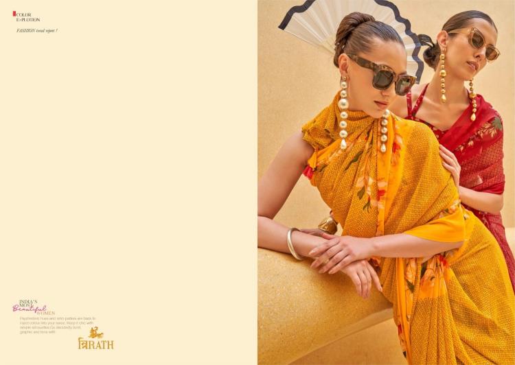 Trirath’s Saree Collection Will Upgrade Your Dressing Style. Wear A Class And Be A Trend Maker, With These New Sets Of Sarees. These Fabrics Are Durable, Have Good Drapability, Soft When Touching Brand : Trirath Catalog Name : Allure Series: 10405 To 10412 Saree Fabric : Exclusive Quest Georgette With Weaving Patterns And Elegant Print With Weaving Lace Border With Marvel Finish Blouse Fabric :Running Rate : 895/-+5% Gst Occasion: Casual Wear, Summer Wear |