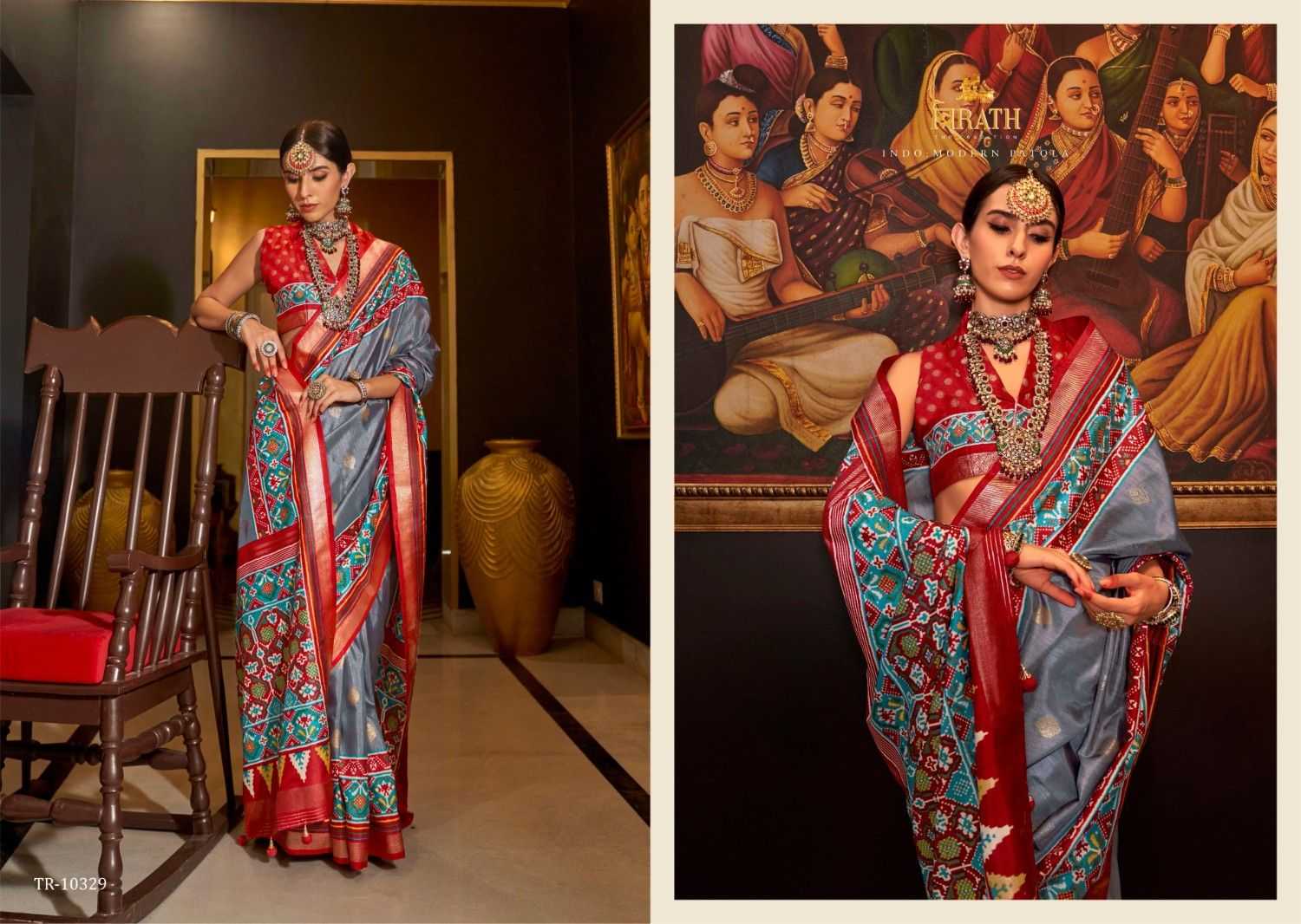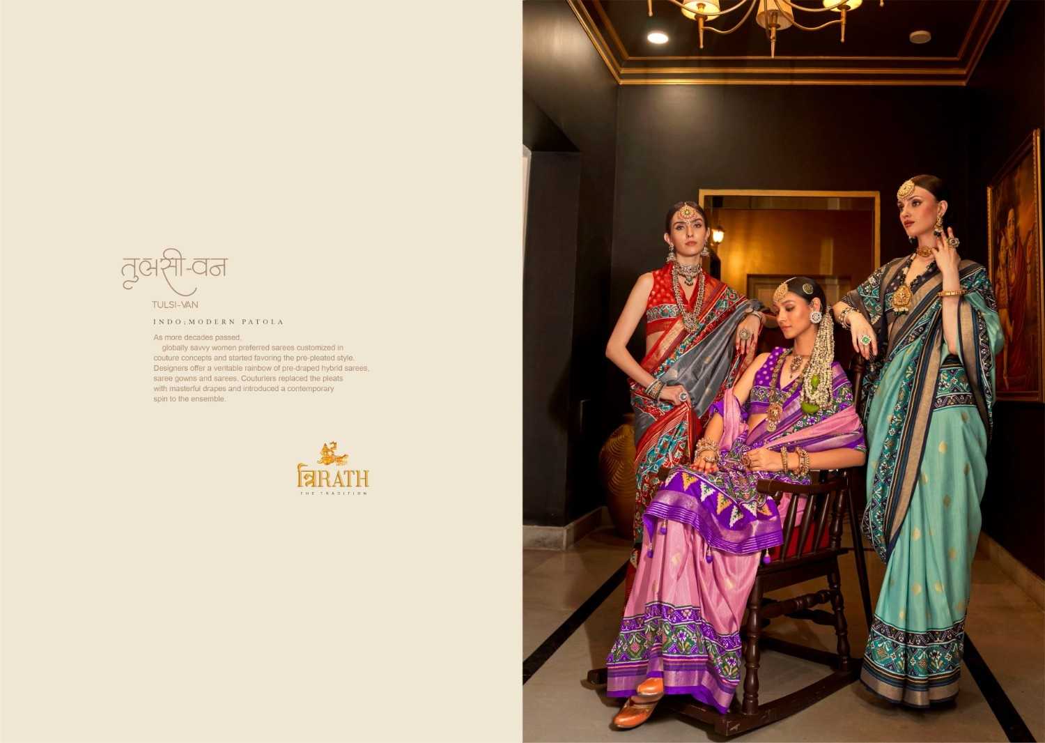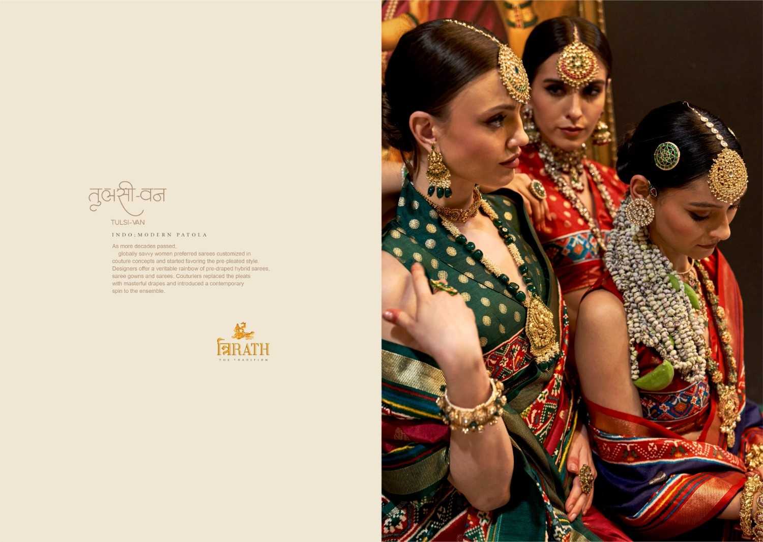TRIRATH CATALOGUE DETAILS:- FABRIC DETAILS:- ▪︎WITH UNIQUE PATOLA DESIGN AND ELEGANT GOLD PRINT *RATE:- 995/- |