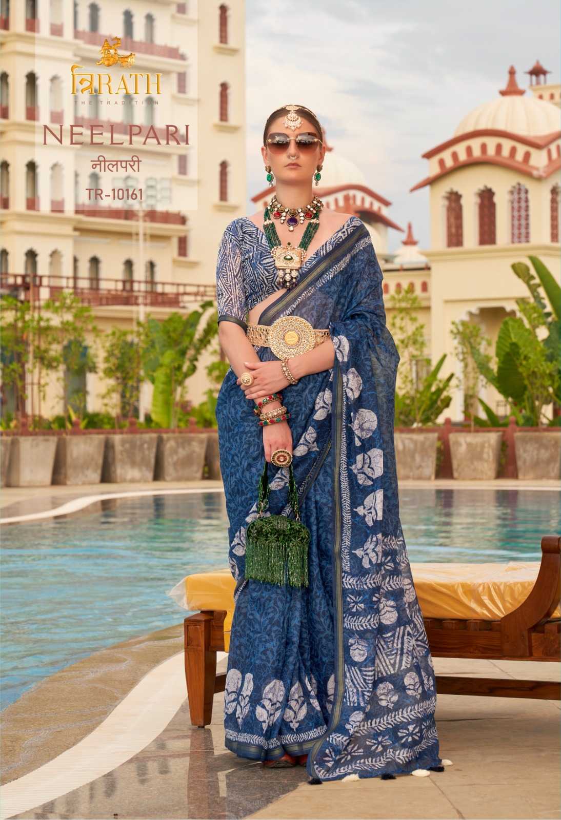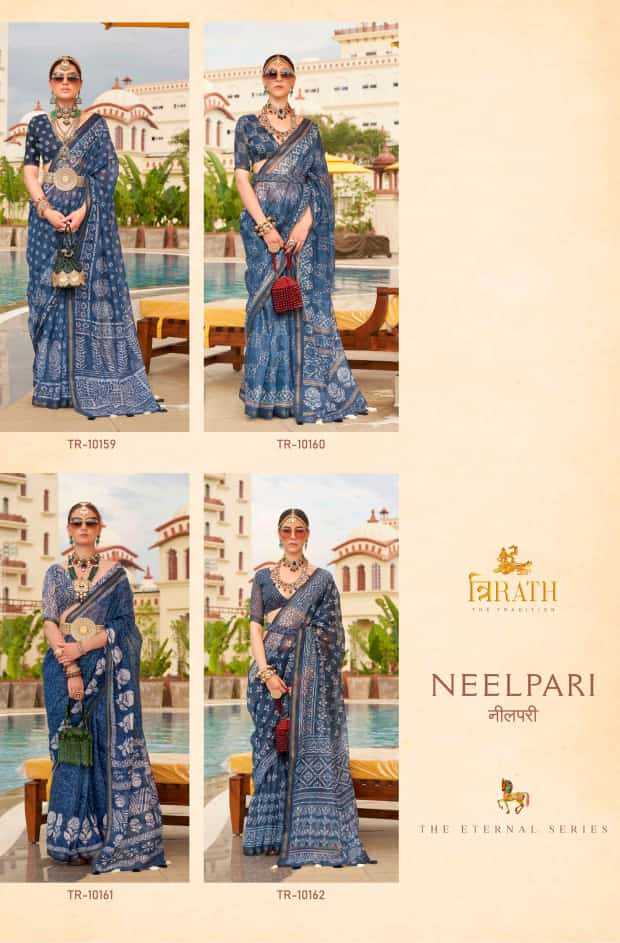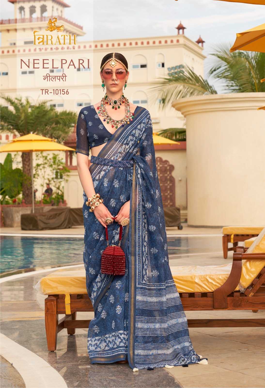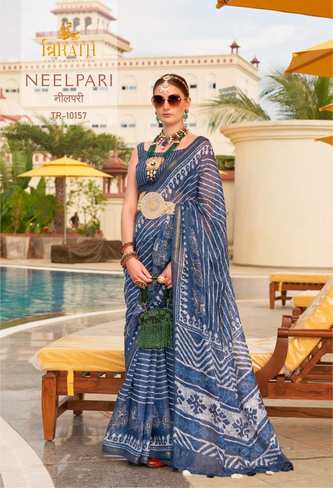 trirath present neelpari blue special fancy linen cotton sarees catalog