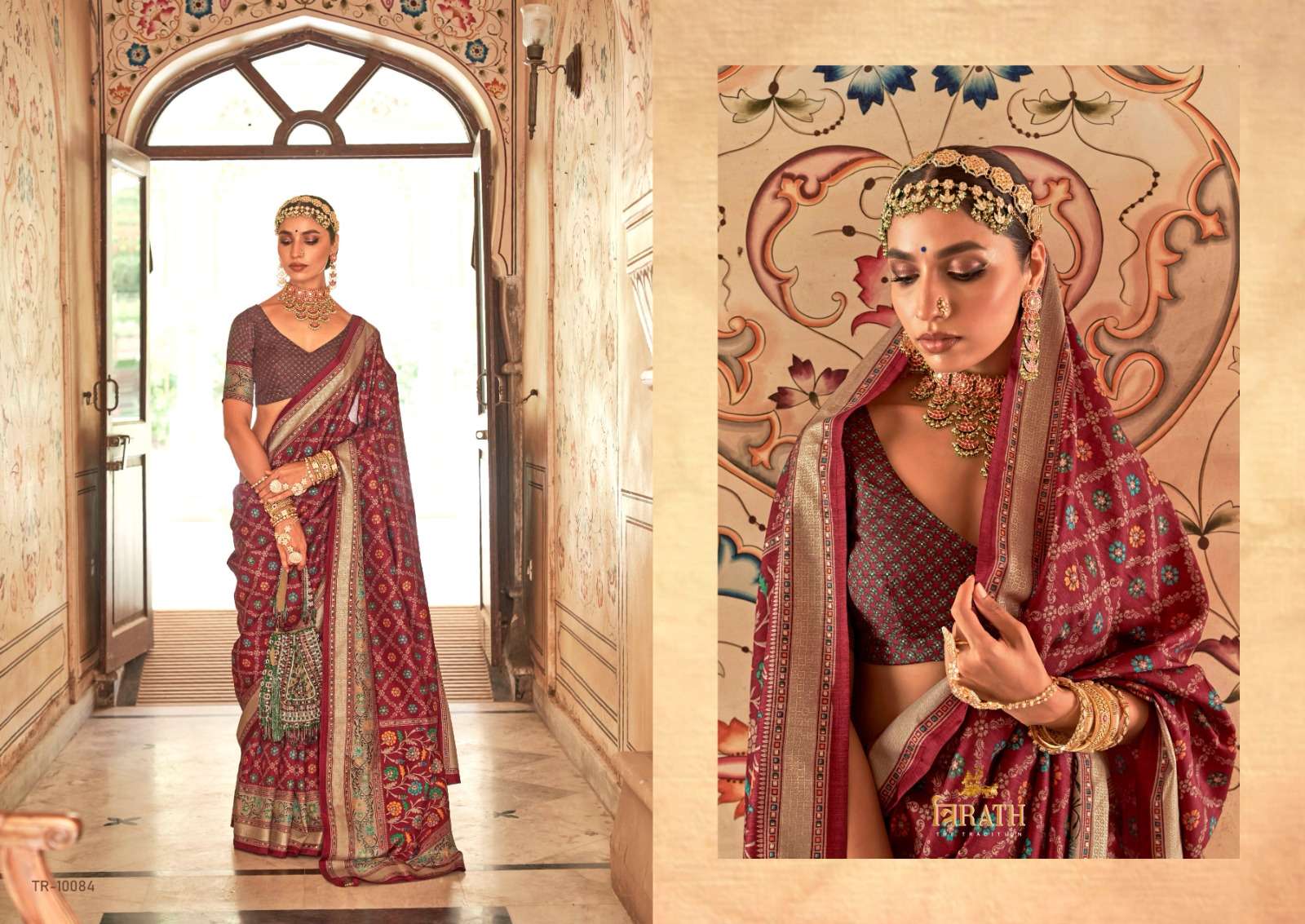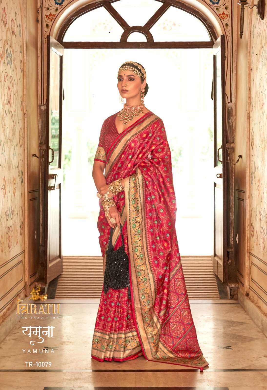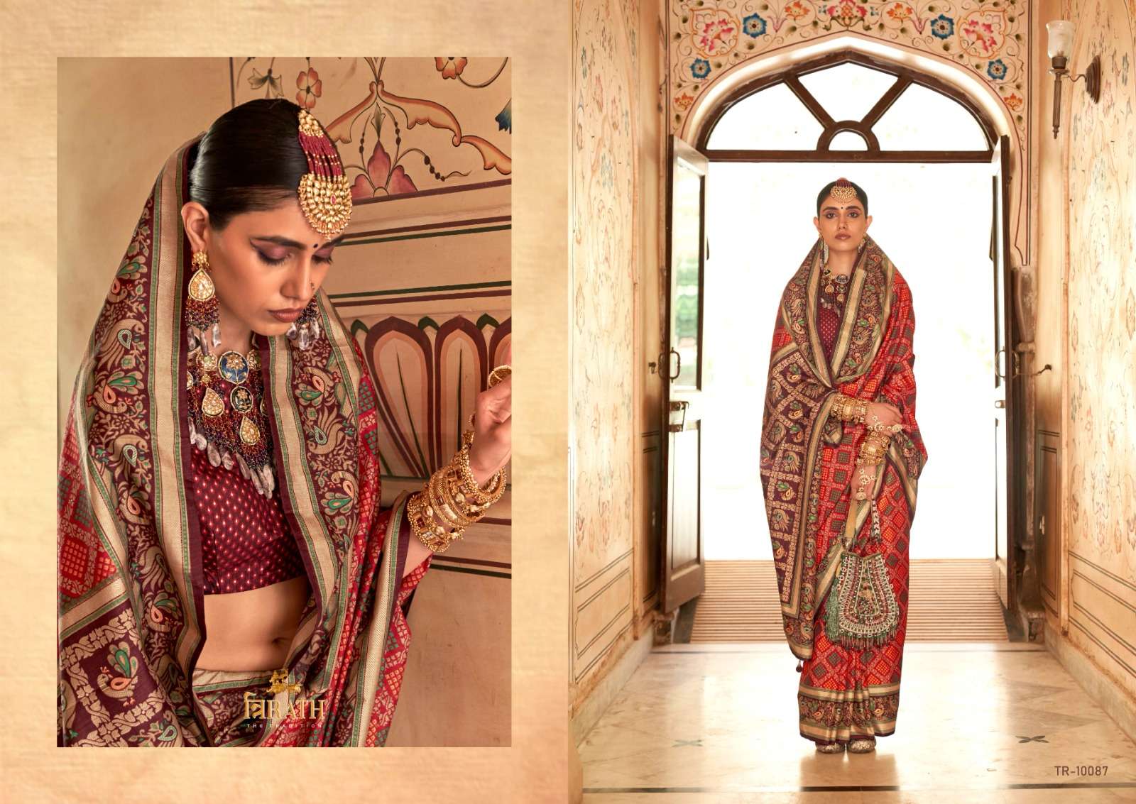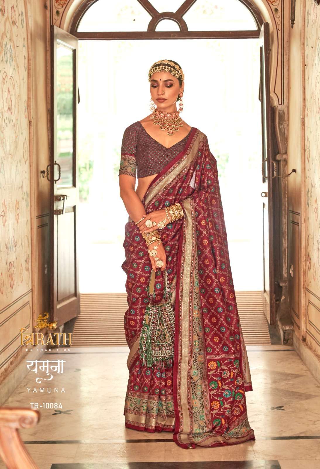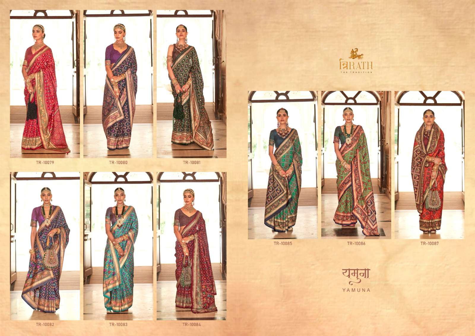 trirath present yamuna 10079-10087 series unique banarasi print silk sarees