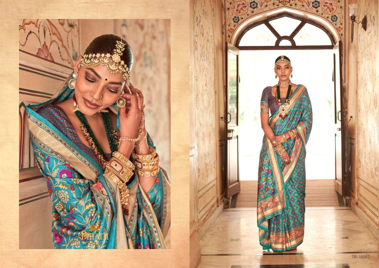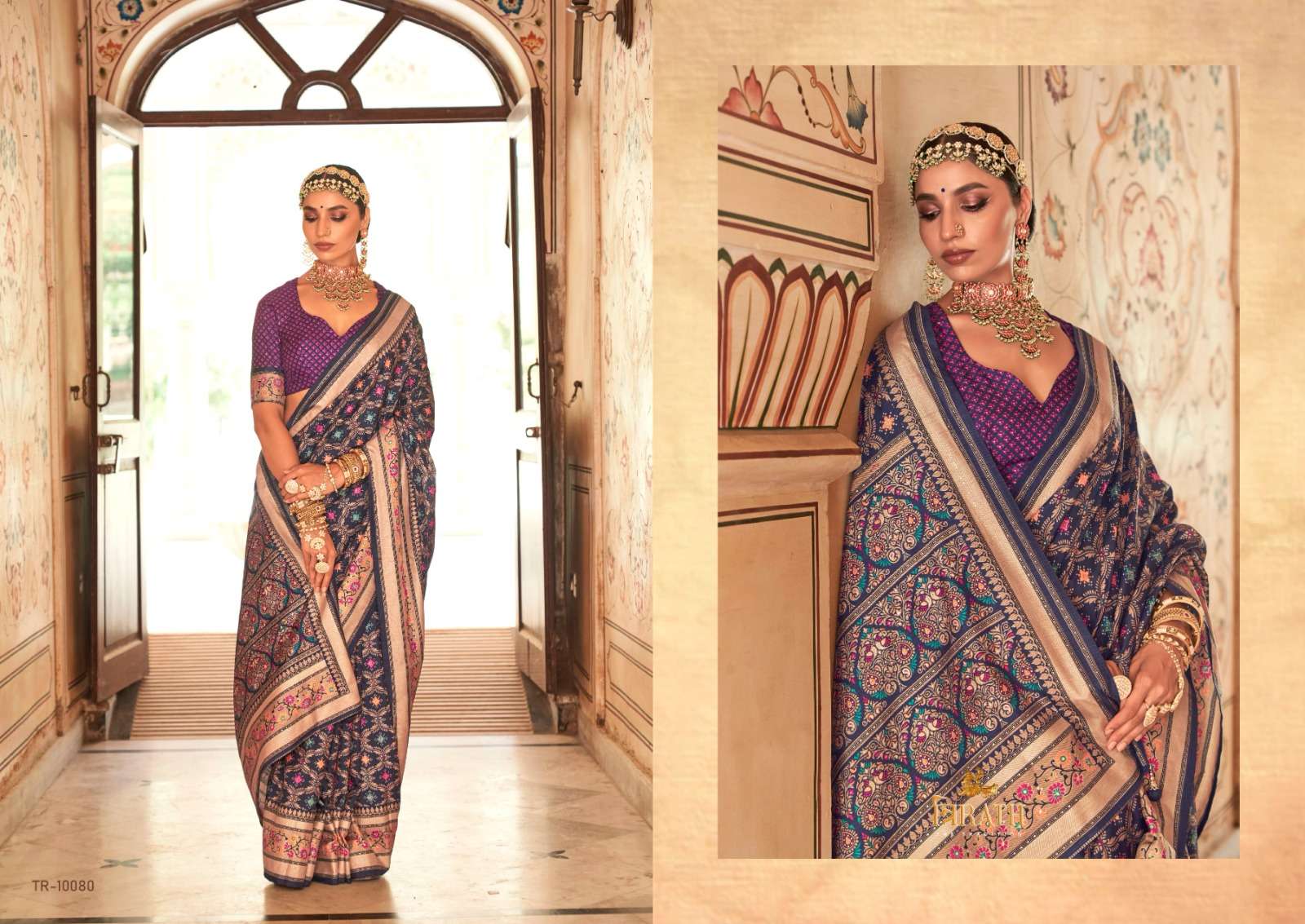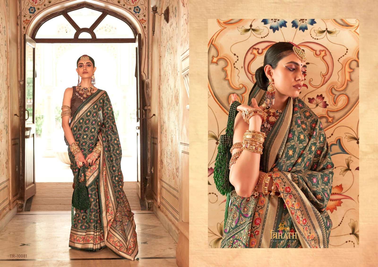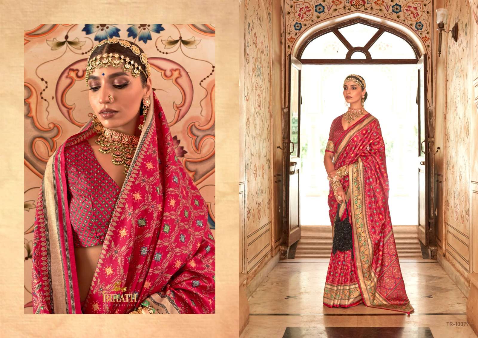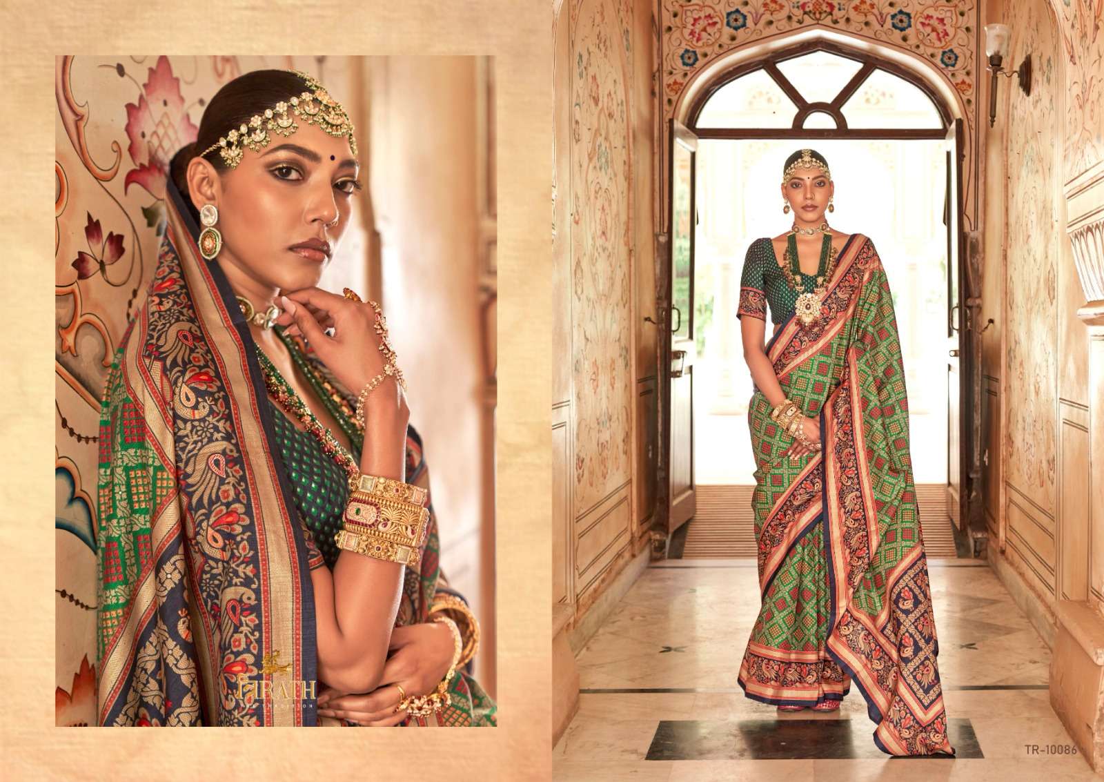 trirath present yamuna 10079-10087 series unique banarasi print silk sarees