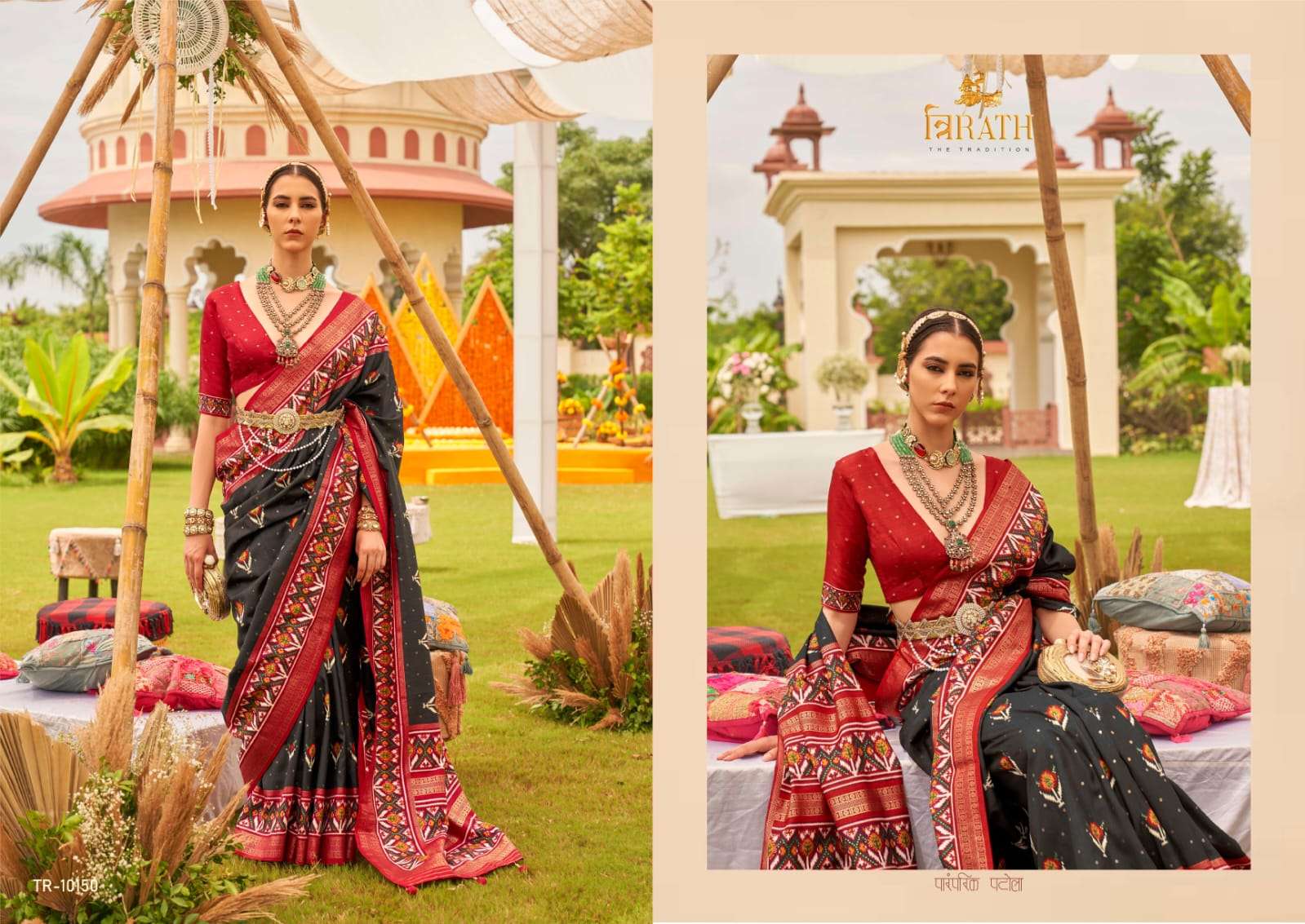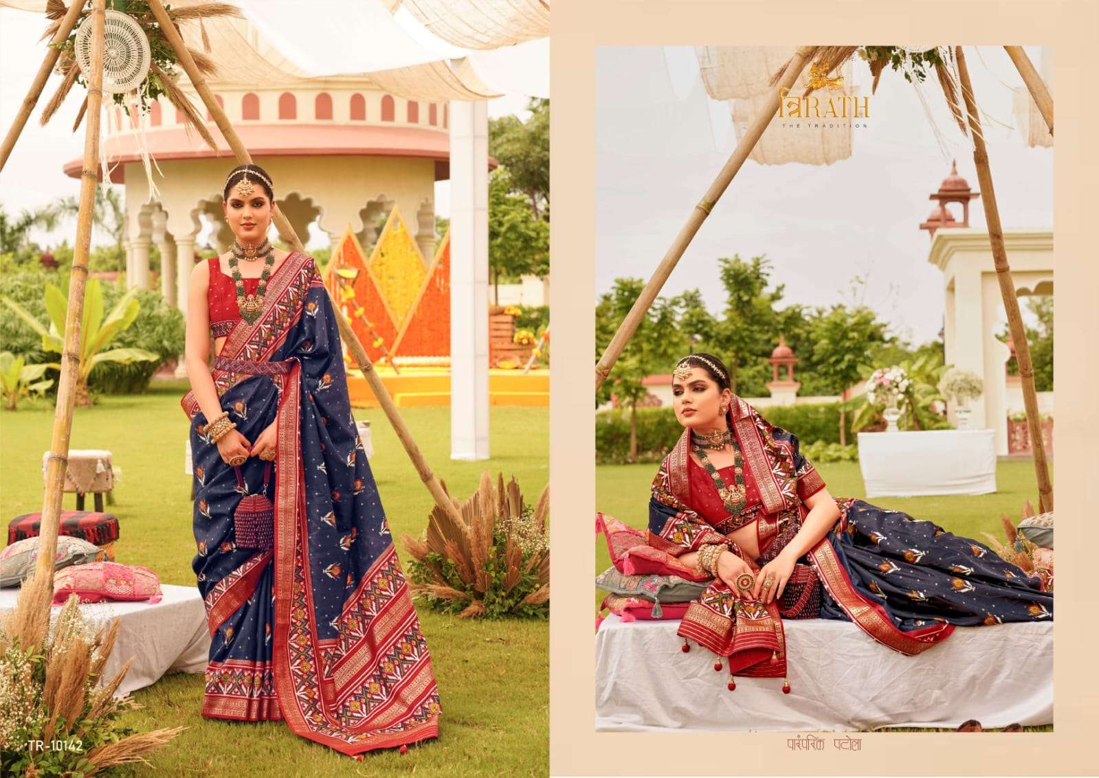 TRIRATH CATALOGUE DETAILS:- FABRIC DETAILS:- â–ªWITH UNIQUE PATOLA DESIGN AND ELEGANT GOLD PRINT WITH GOLD PRINTED WAIST (KANDORA) *RATE:- 1195/- per pcs |