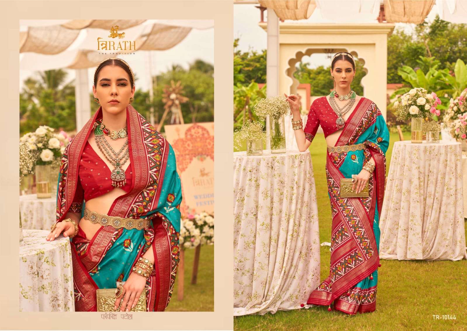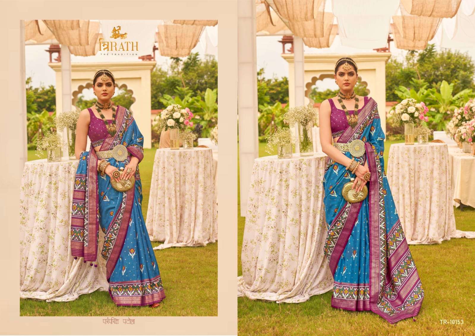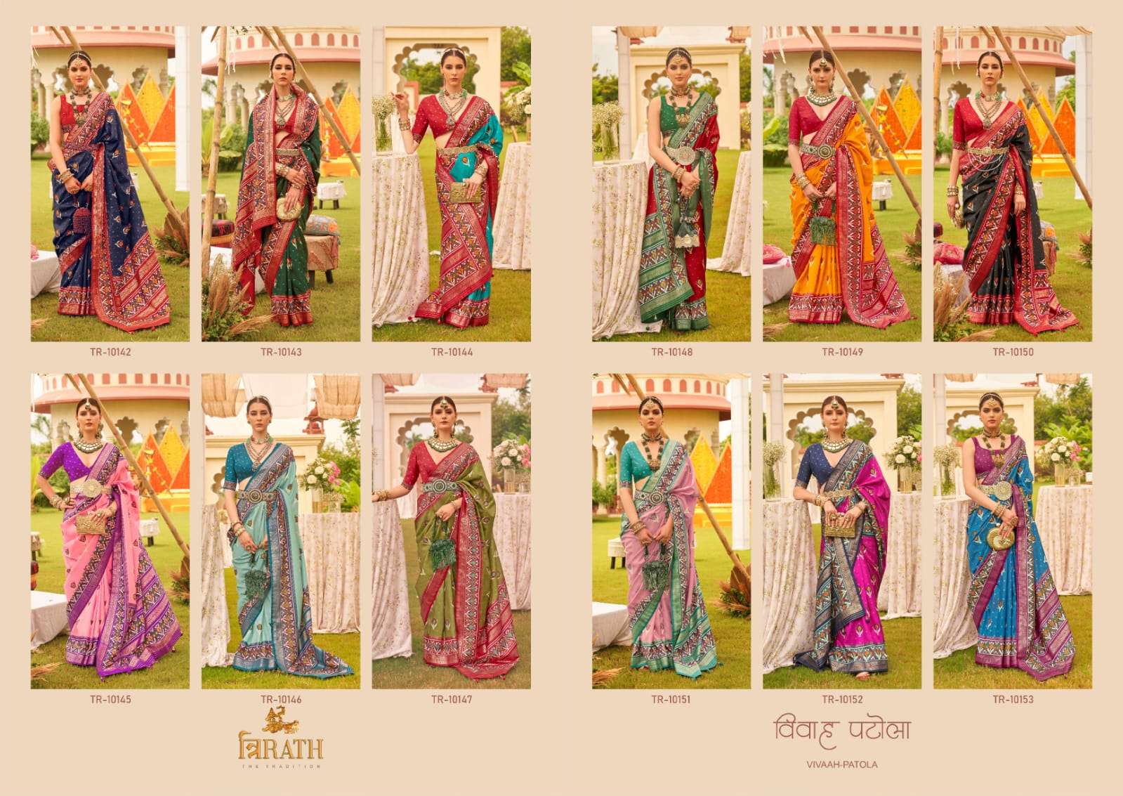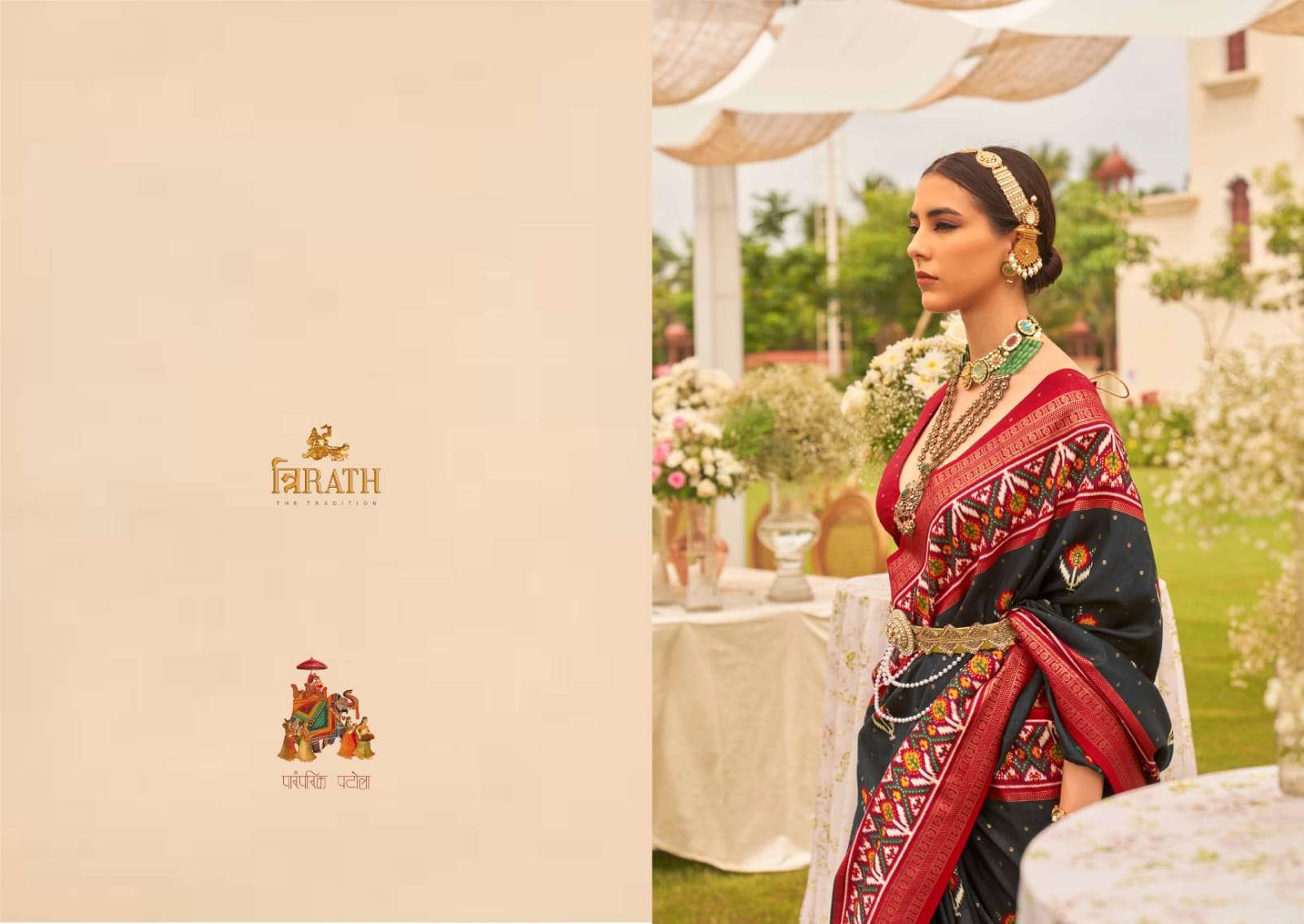 trirath vivaah patola latest collection unique patola design elegant gold print sarees