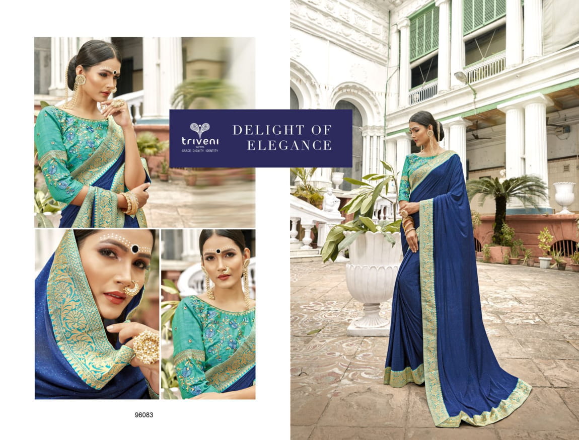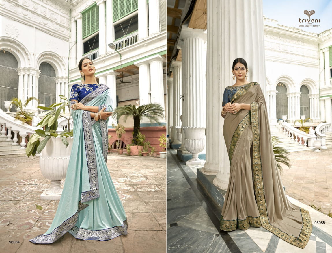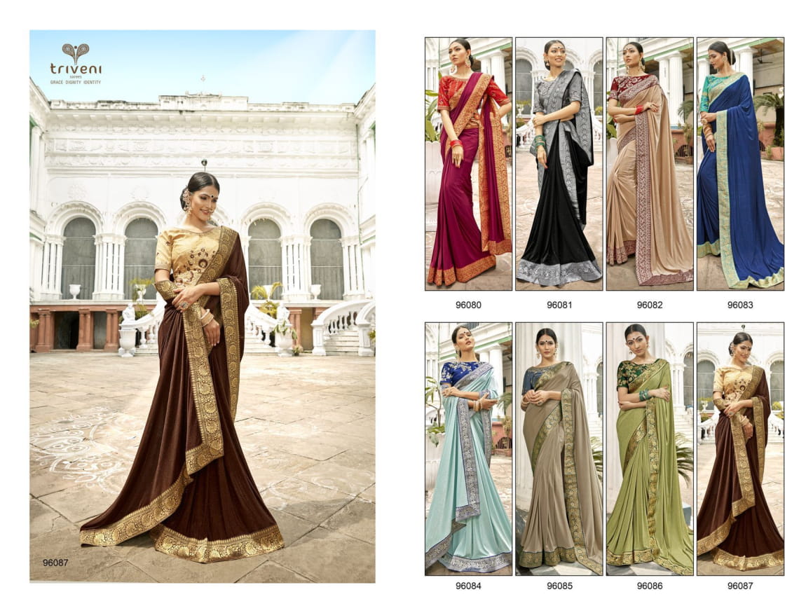 Triveni Vaasuki China Work Party Wear Saree 96080-96087 Series Wholesaler