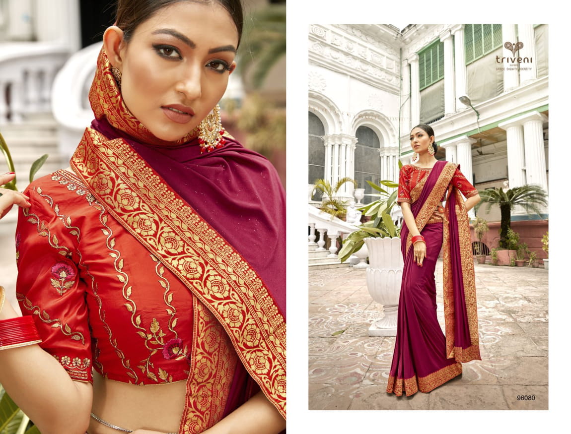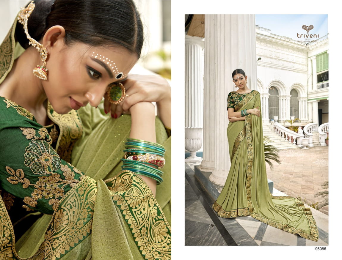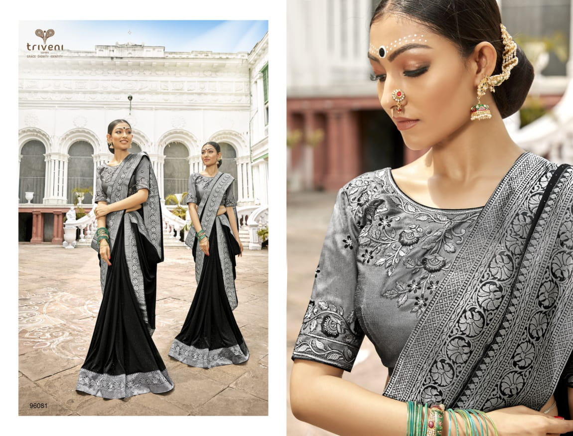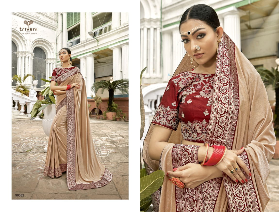 Triveni Vaasuki China Work Party Wear Saree 96080-96087 Series Wholesaler
