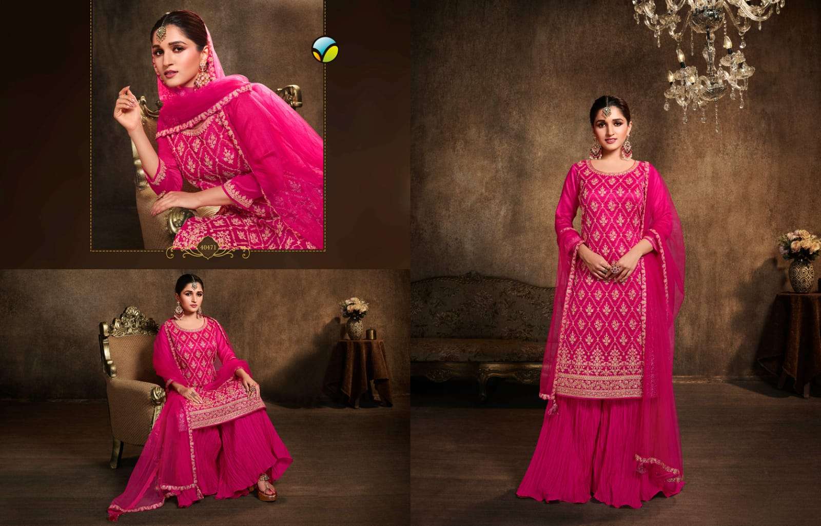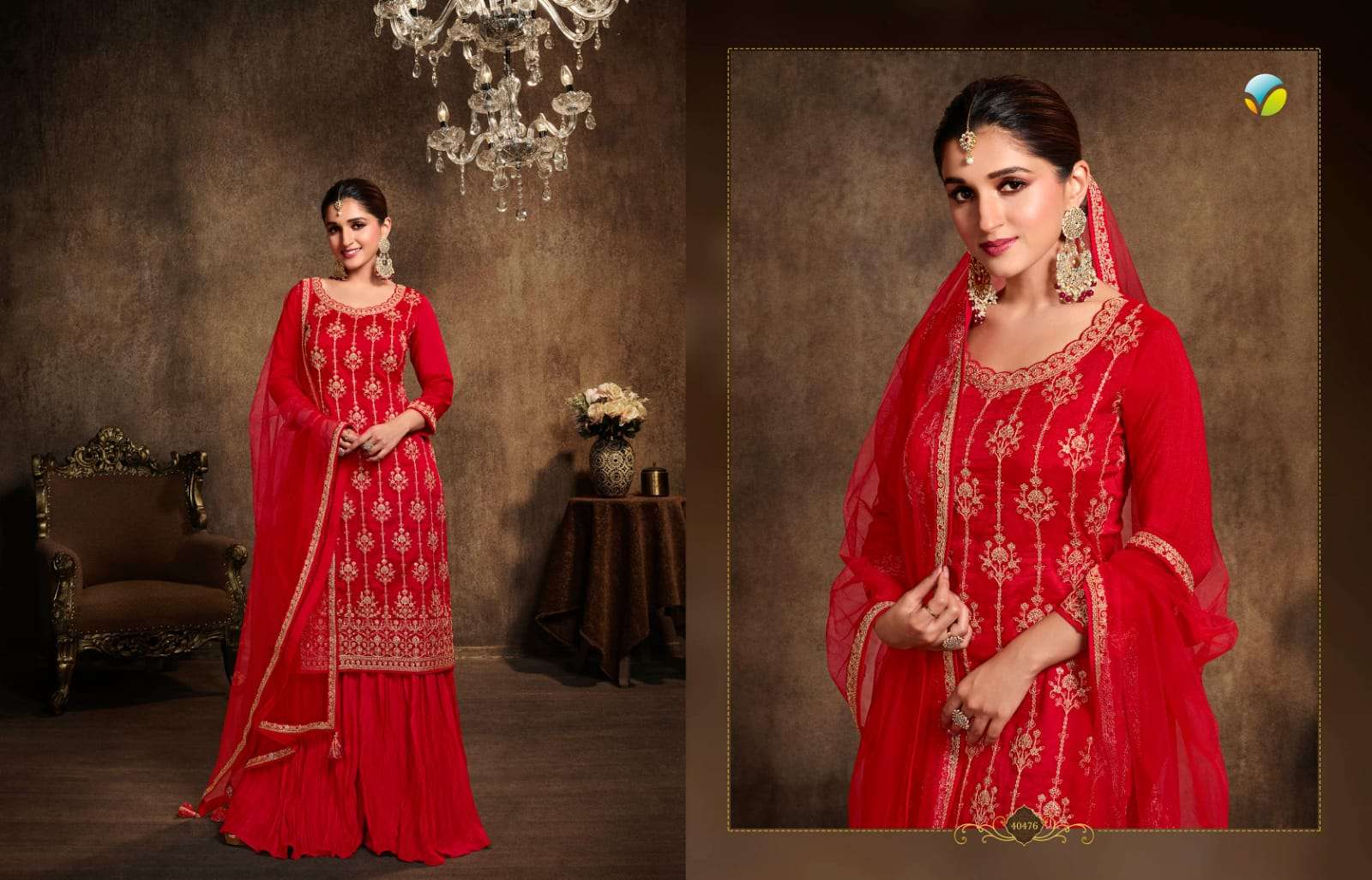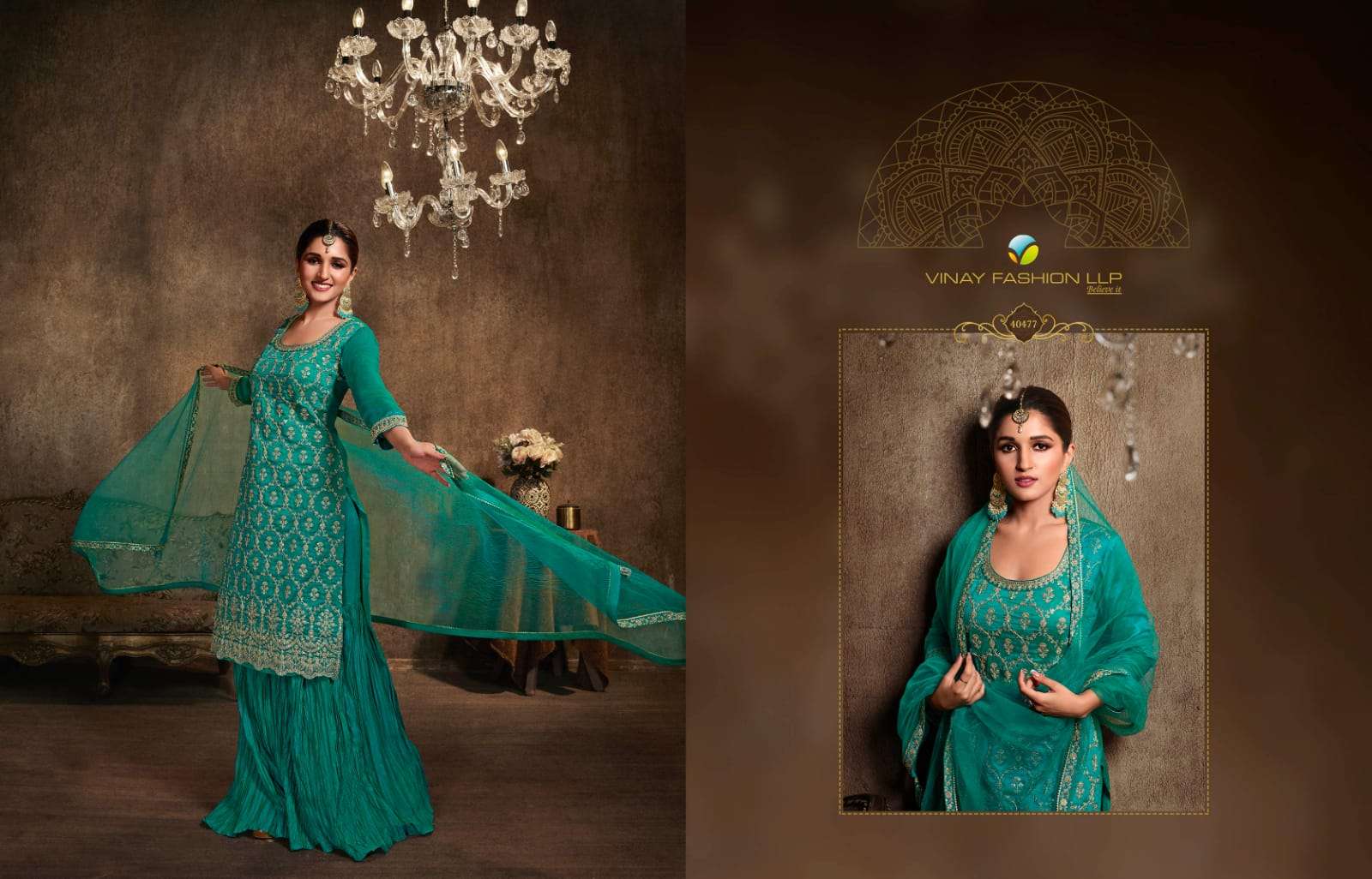tumbaa raas by vinay readymade silk georgette kurta with sharara & dupatta set