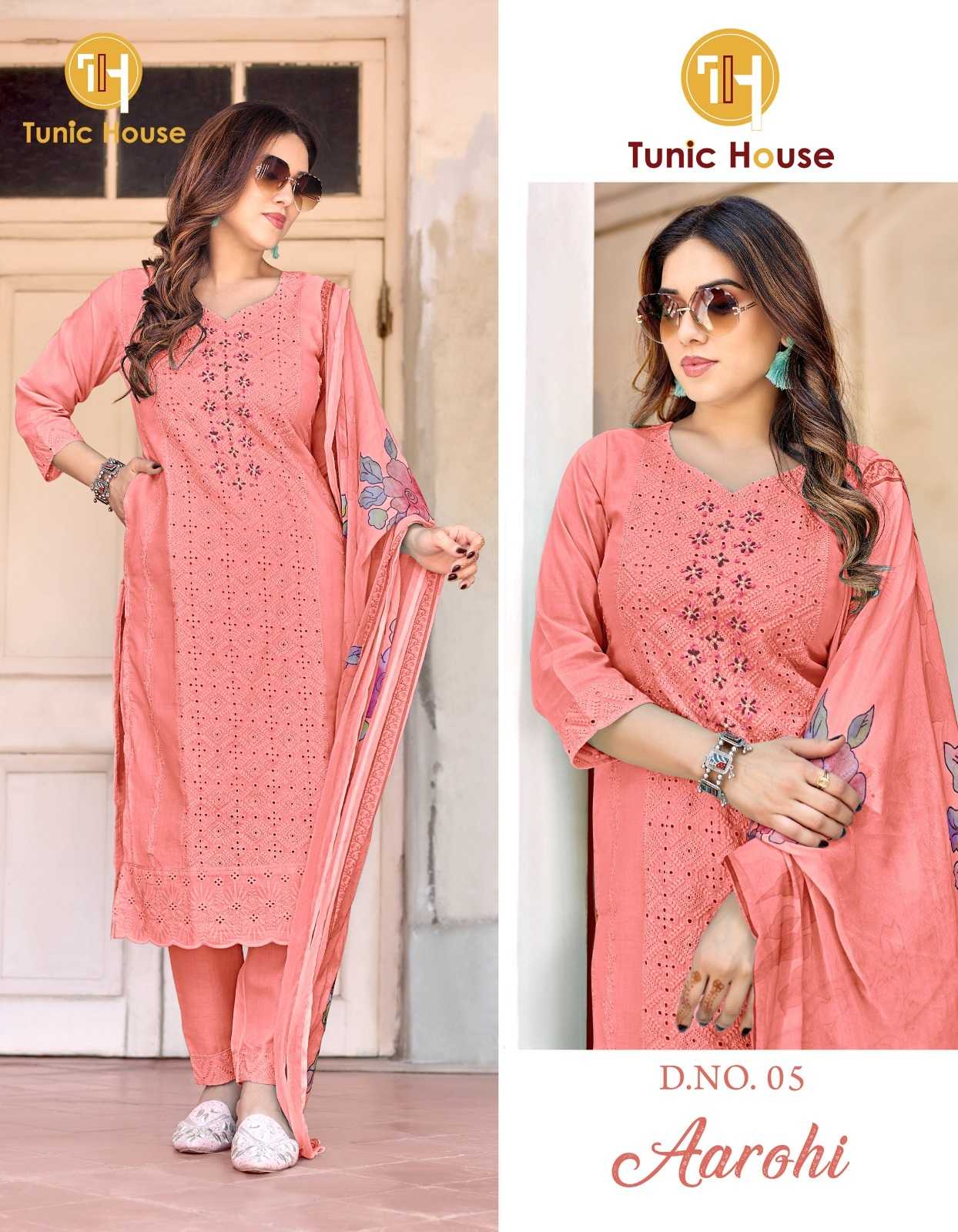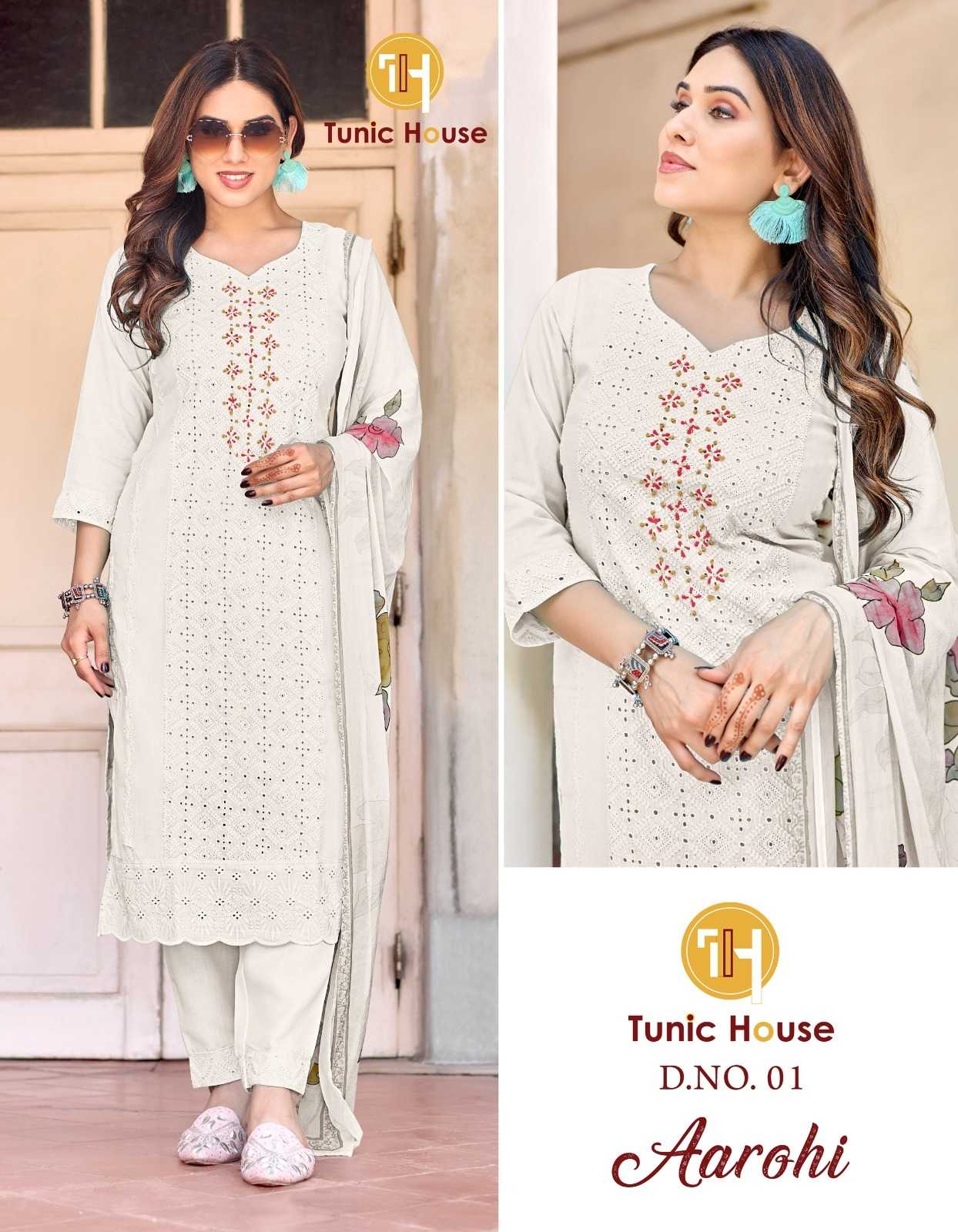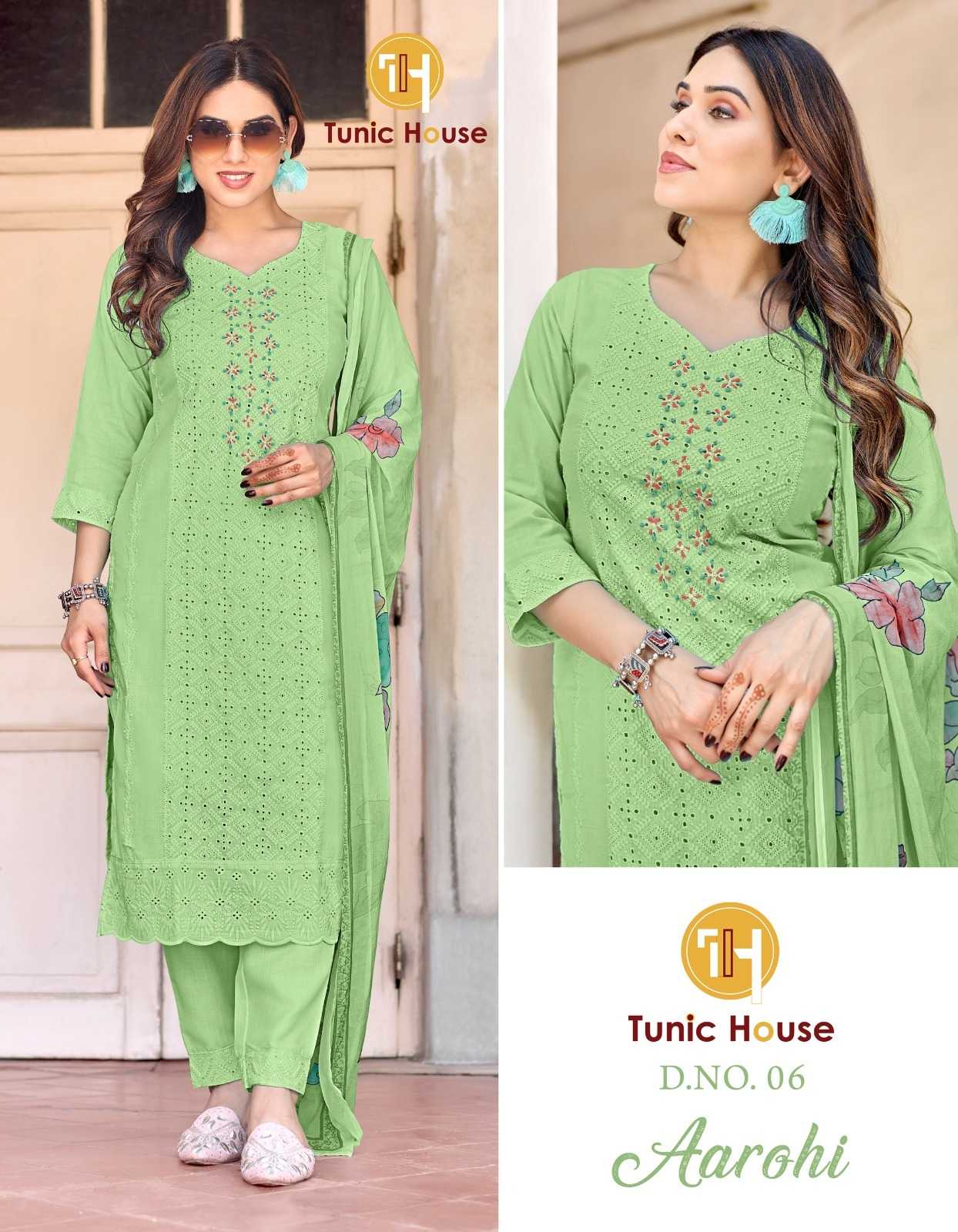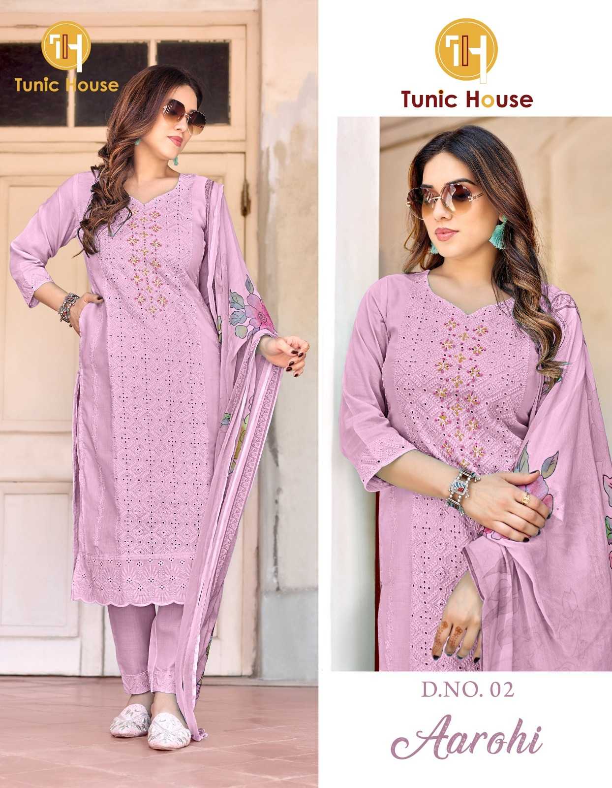 TUNIC HOUSE AAROHI CHIKANKARI COTTON READYMADE 3 PCS COMBO SET