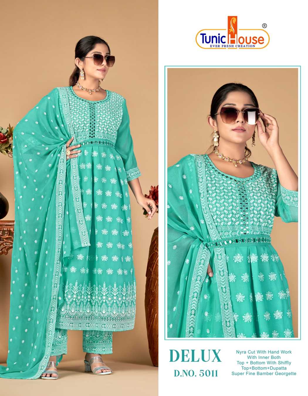 tunic house delux fancy festive collection schiffli work readymade salwar kameez combo set