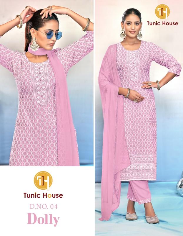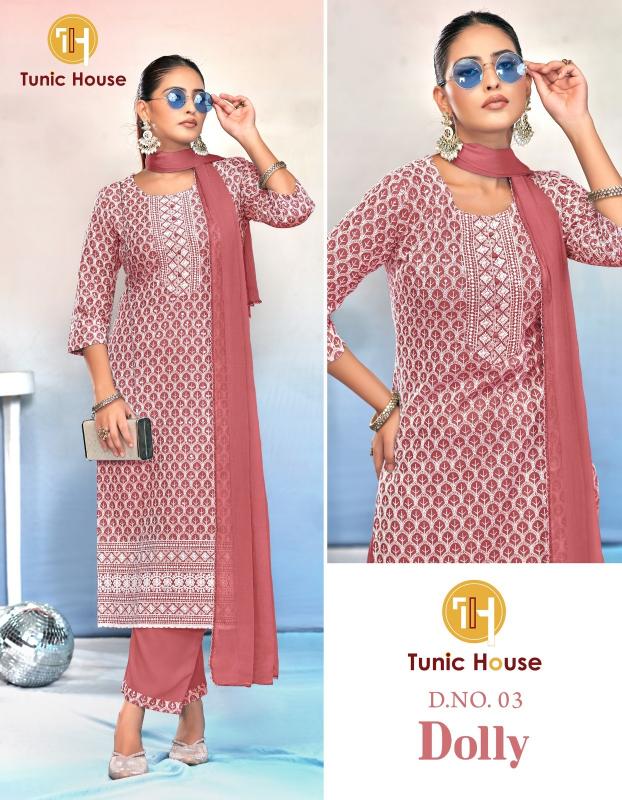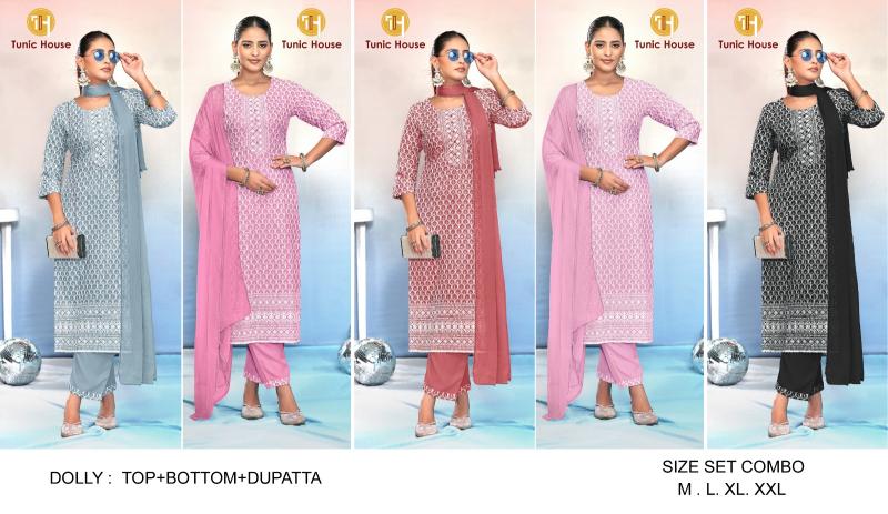 TUNIC HOUSE DOLLY CHIKANKARI TOP BOTTOM DUPATTA SIZE SET COMBO (MTO2XL)
