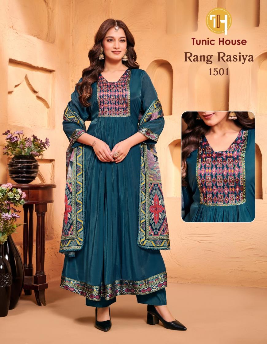 TUNIC HOUSE 💃🏻RANG RASIYA💃🏻 FABRIC TOP :- MUL CHANDERI With INNER BOTTOM :- ROMAN SILK DUPATTA :- PURE BRASSO WIH DIGITAL PRINT