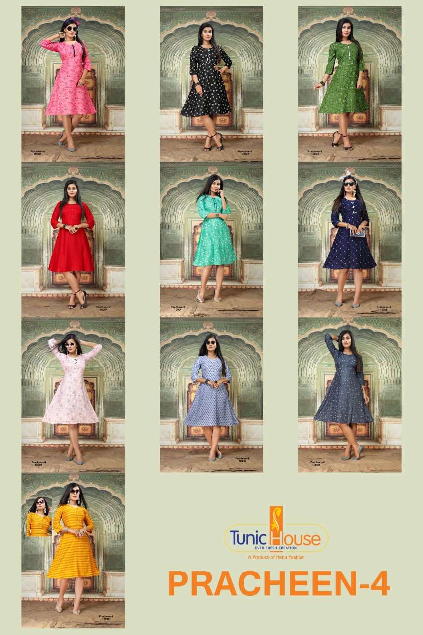TUNIC HOUSE (A GROUP OF NEHA FASHION)    Presents New Catalogue         Catalog Name : PRACHEEN VOL-4 FABRIC :- Rayon Viscous Printed Size -  M(38), L(40), XL(42), XXL(44) Rate â   260/- Gst-5%extra Set To Set. Design : 10 Booking Started from now... Order yours Dispatch :-  READY TO DELIVERY |