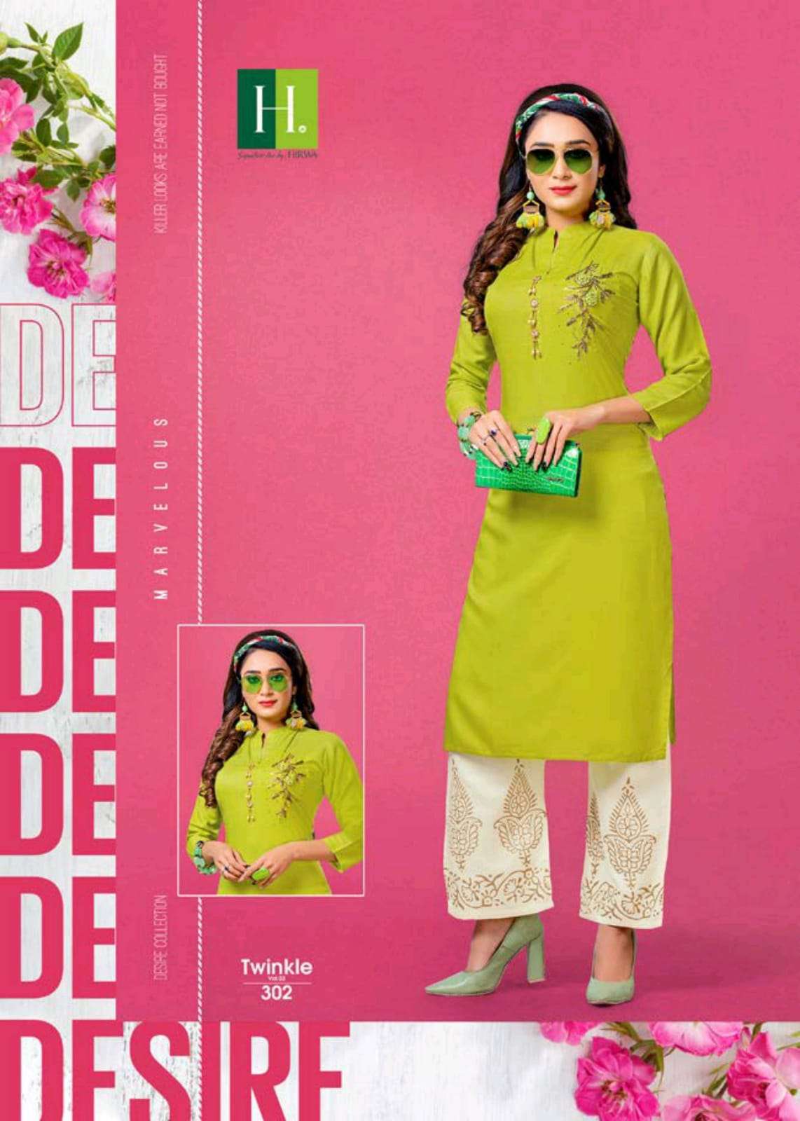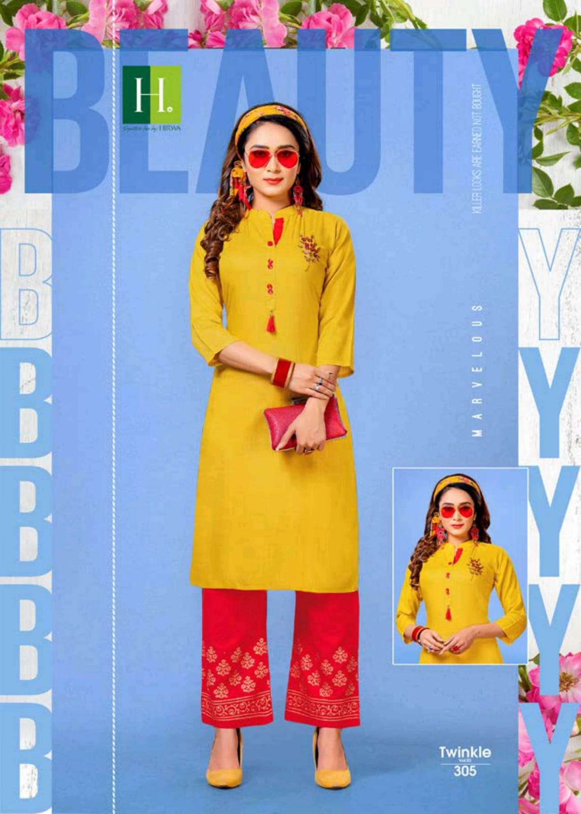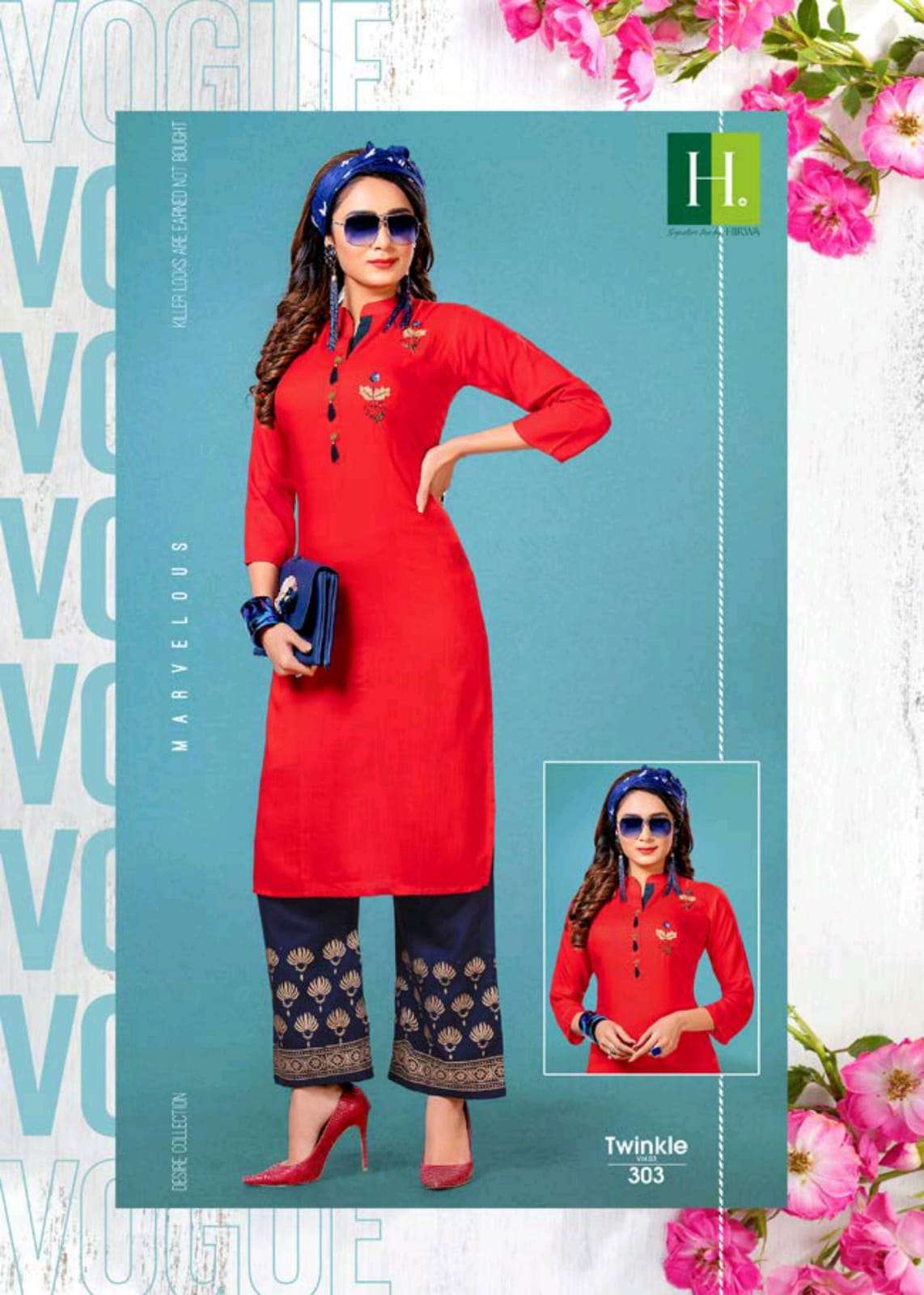 twinkle by h dot hirwa kurti with gold print plazzo pocket style