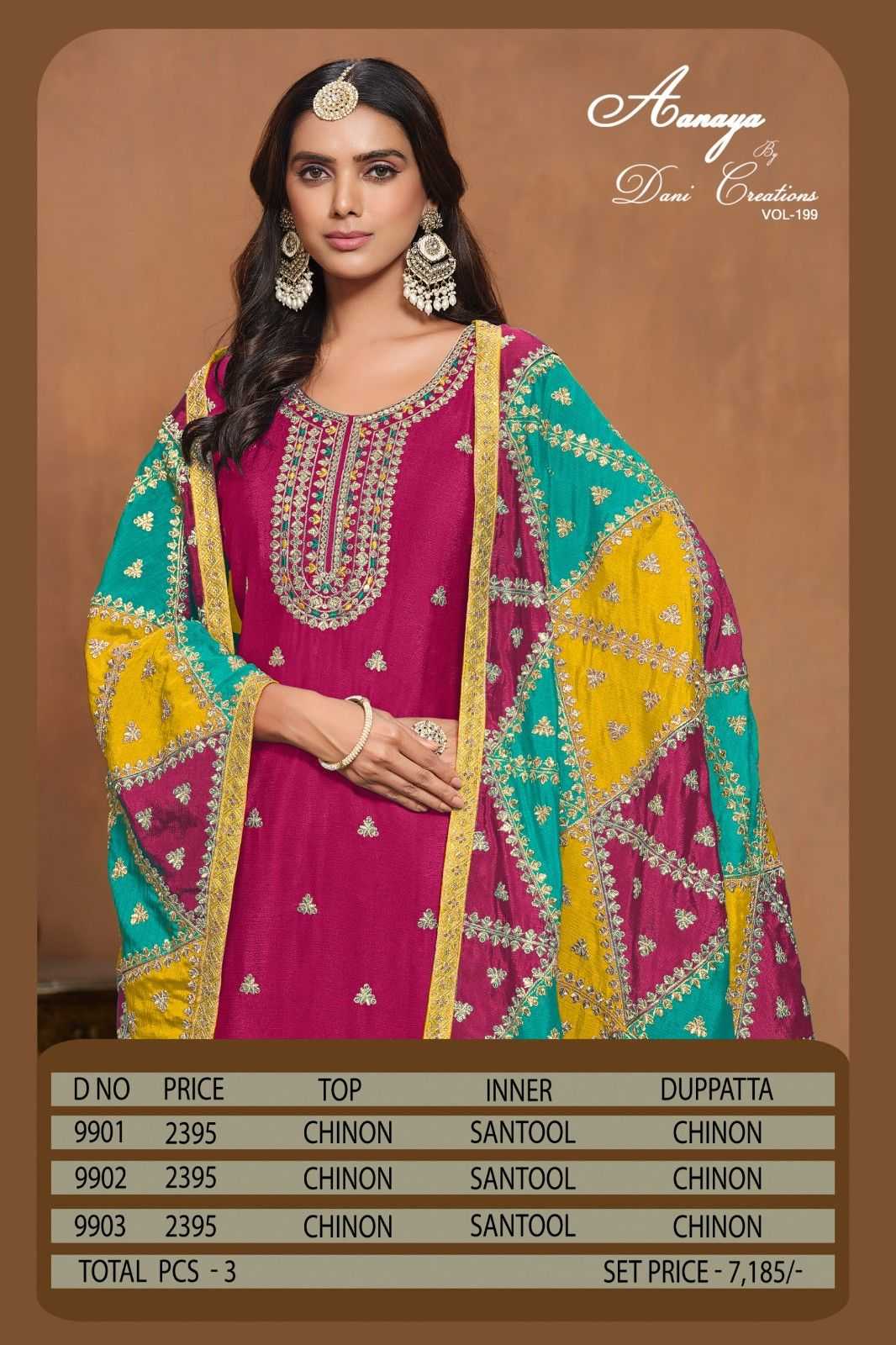 Hello Sir, 🌹 AANAYA VOL 199 🌹 👗TOP. – CHINON SILK 🇬🇲INNER- SANTOOL 🇫🇲 DUPATTA – CHINON SILK Price :- 2395/- RS NOTE:- This Product Can Stitch Up To 50" GST 12% EXTRA |