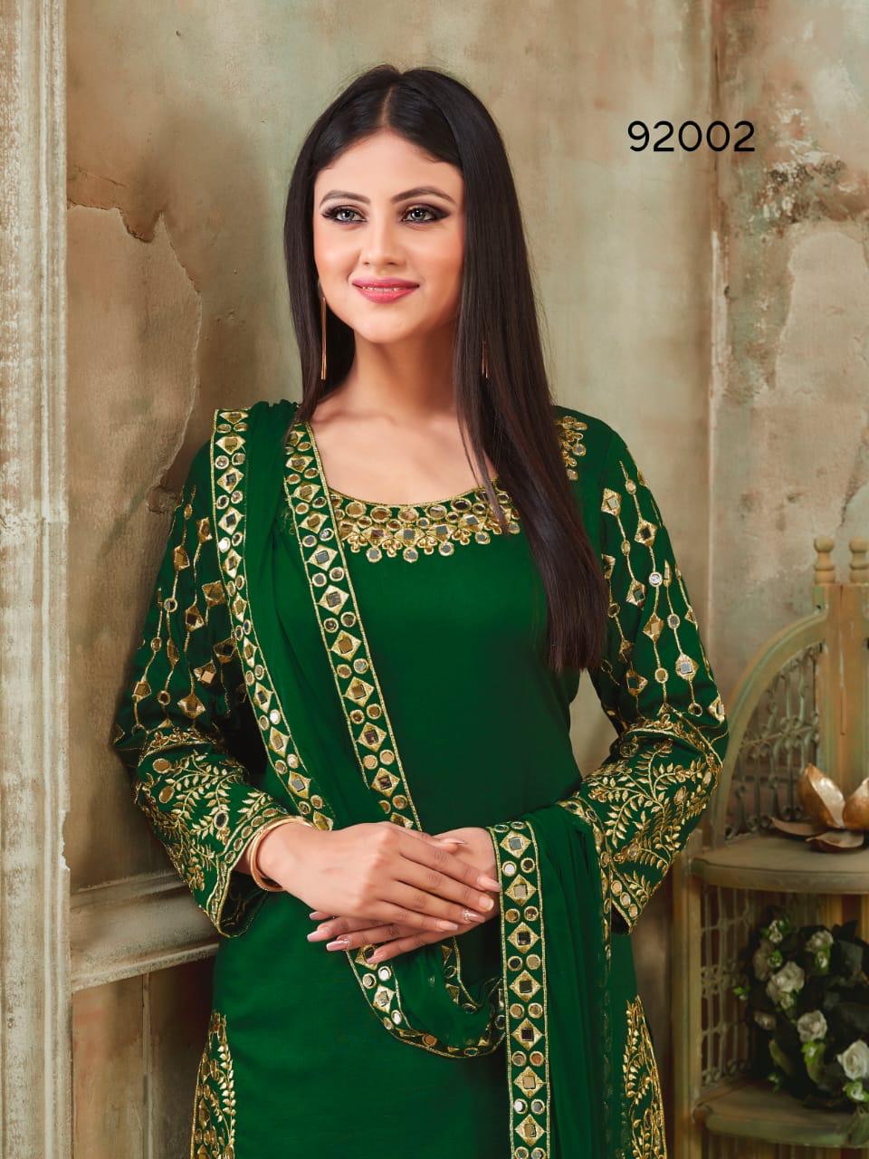 AANAYA 92000 (vol-92) Top. – Art silk(first face) Bottom- Santool Dupatta –Net With heavy glass work border Price :-1195 Note:-product came with real glass work GST 5 Percent Extra |