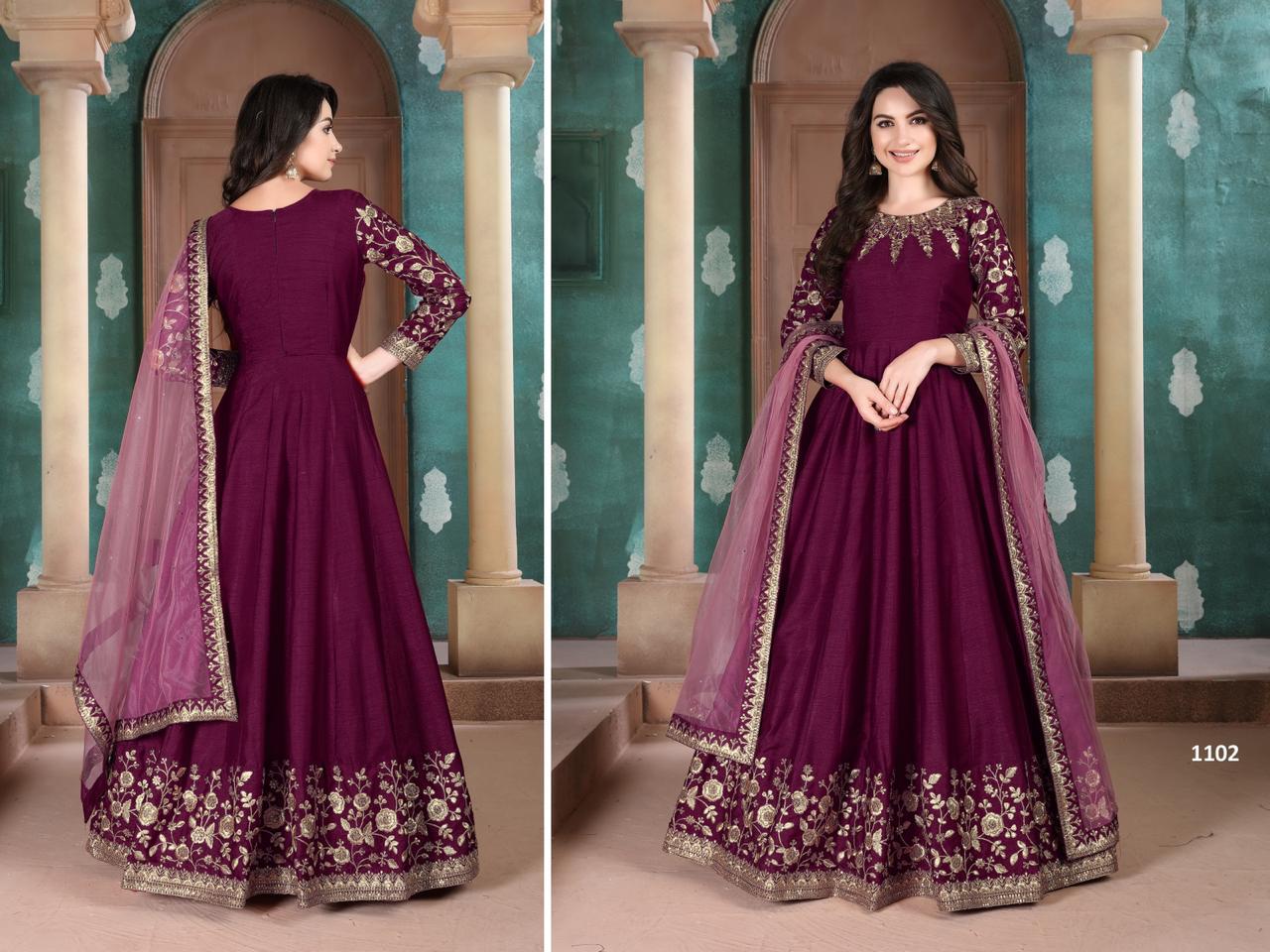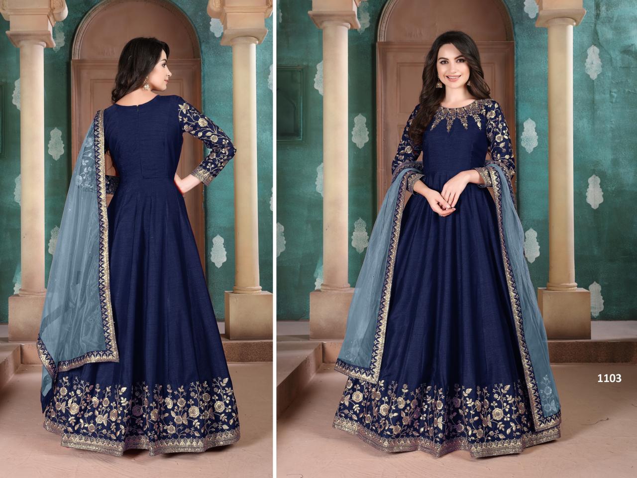 Twisha Presents Aanaya Vol 111 Silk Base Fancy Long Gown Style Salwar Suits Looking Pretty