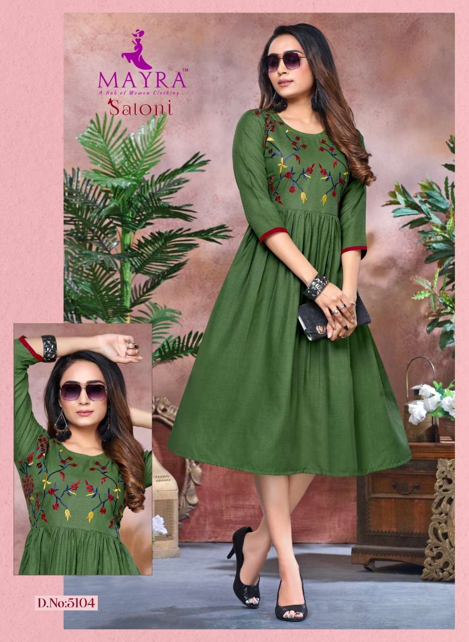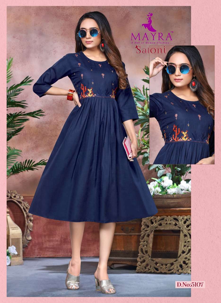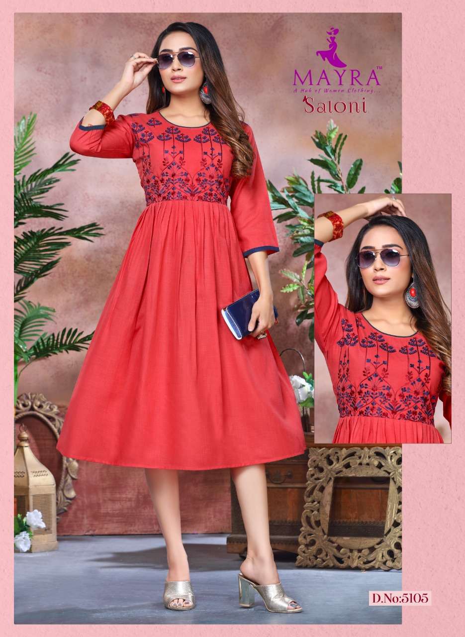 Tzu Launch Saloni Rayon Work Fancy Wear Ladies Kurtis Festive Collection