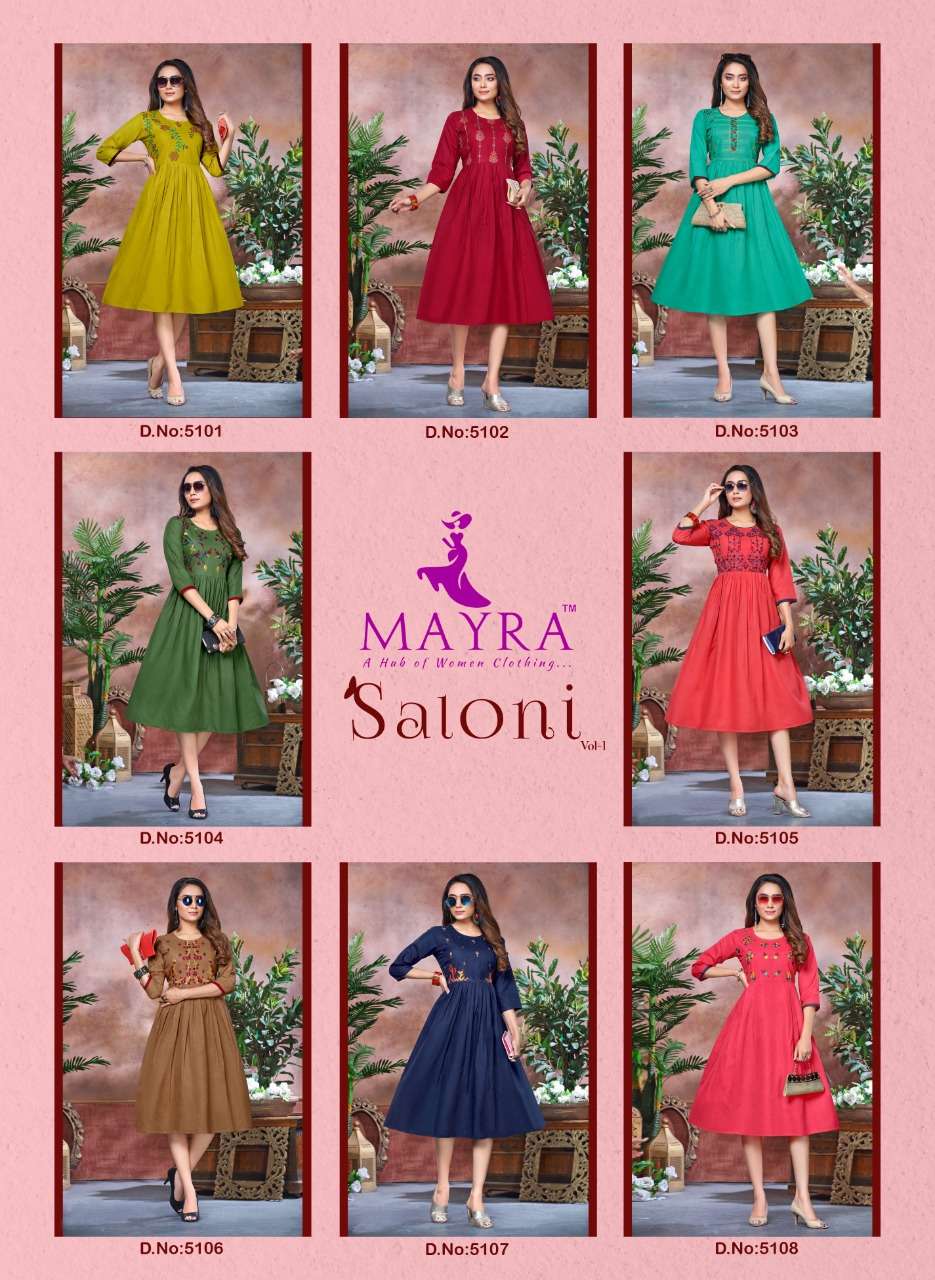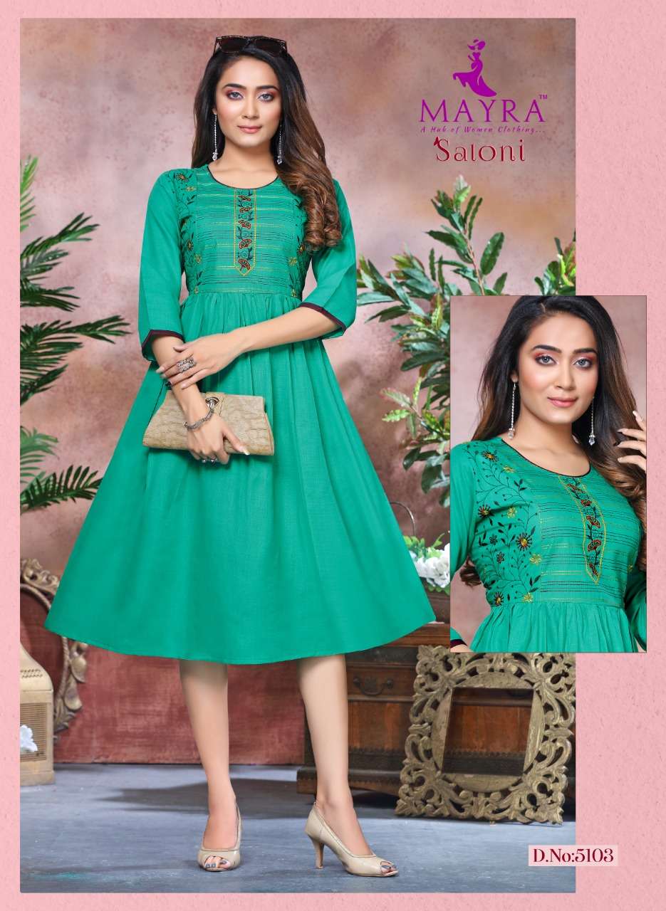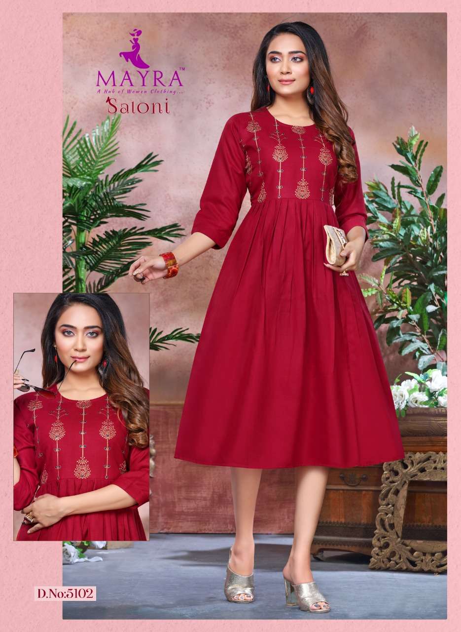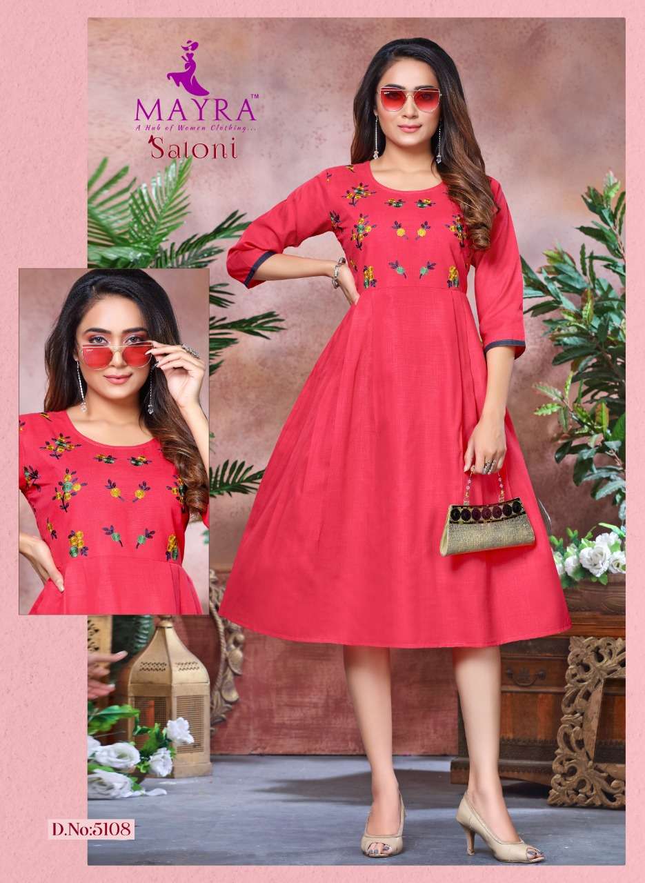 Tzu Launch Saloni Rayon Work Fancy Wear Ladies Kurtis Festive Collection