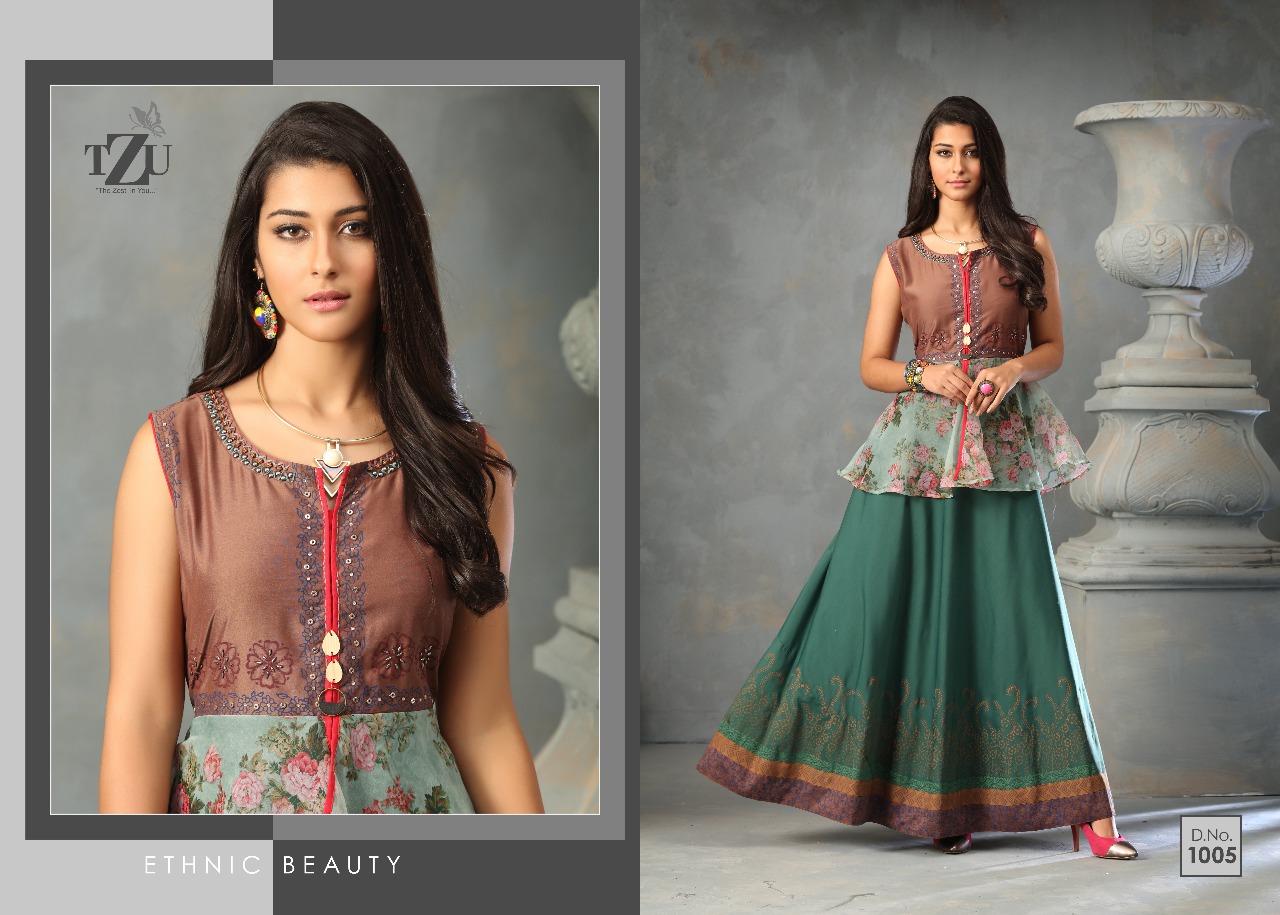 Tzu Life Style Presents Charming Tussar Silk Long Round Cut Kurti With Double Layered