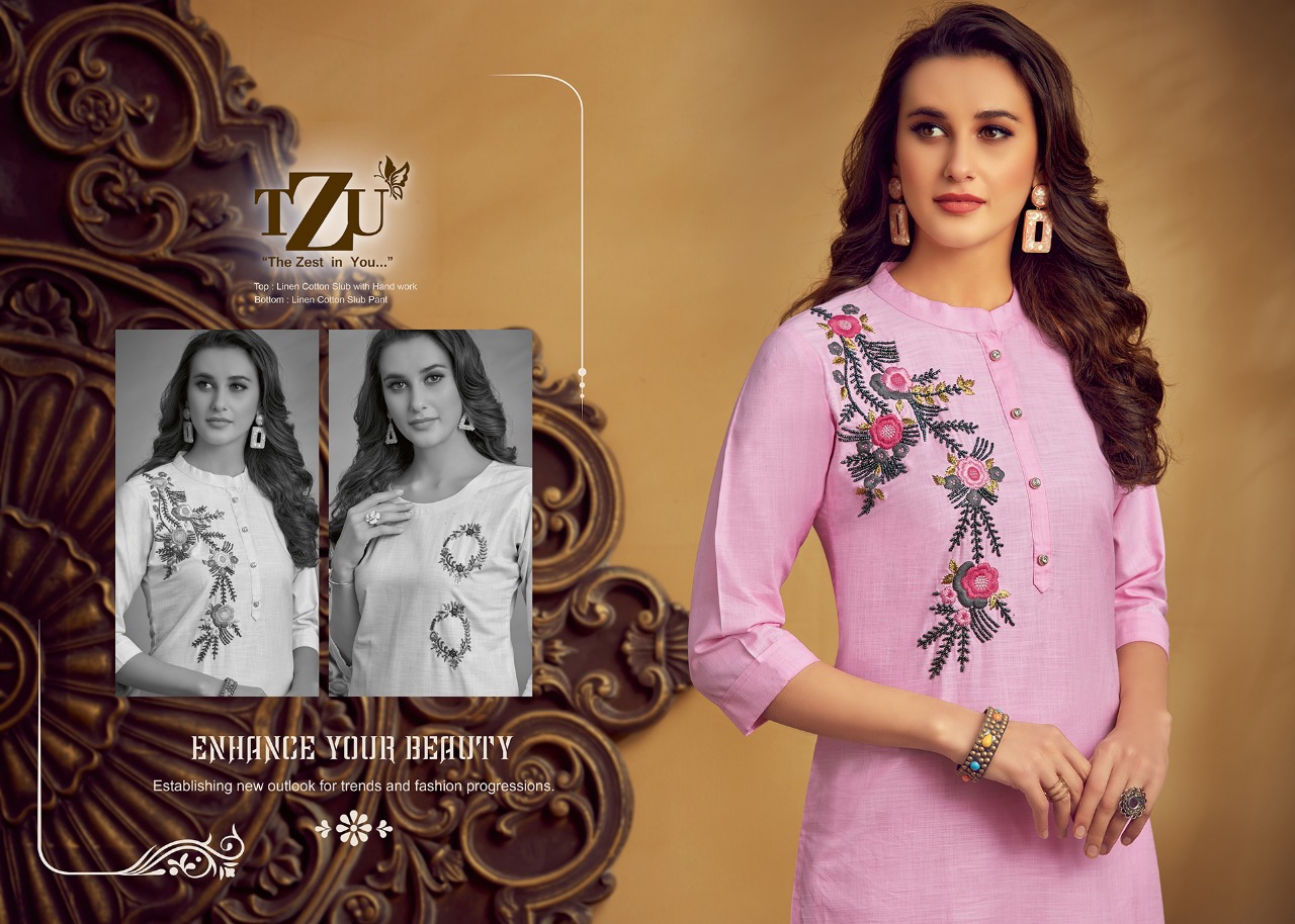 Tzu Present Amaya Linen Cotton Handwork Top And Bottom Collection