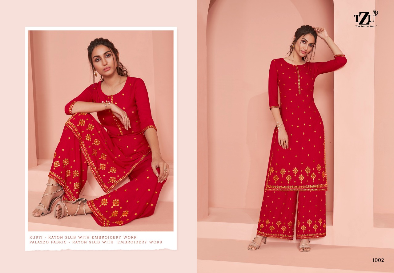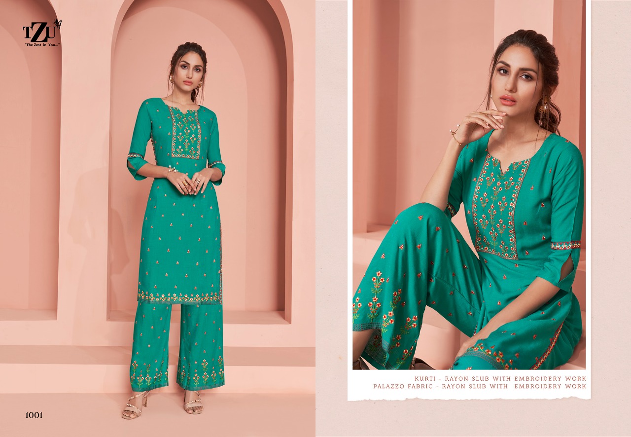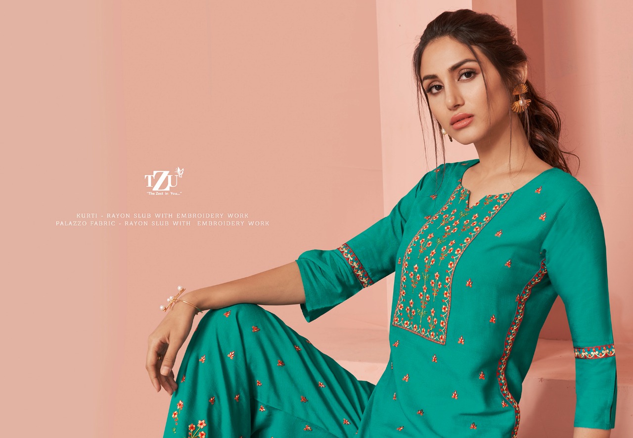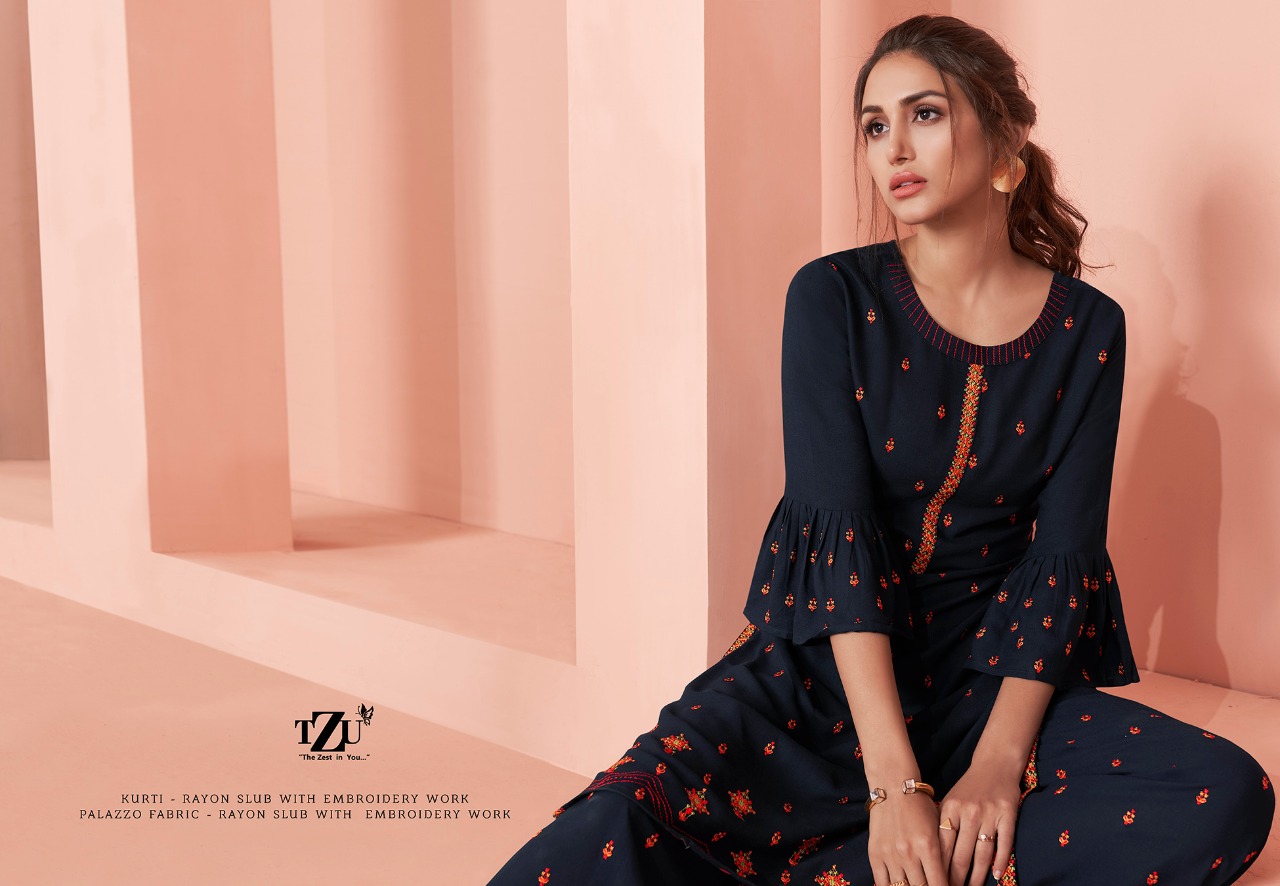 Tzu Shipra Rayon Designer Kurti And Plazzo Collection