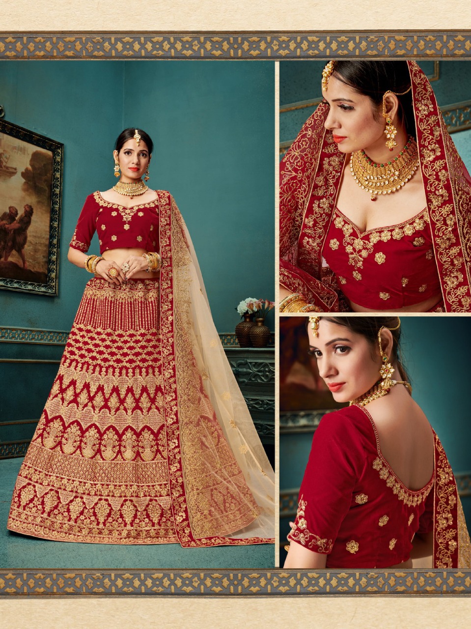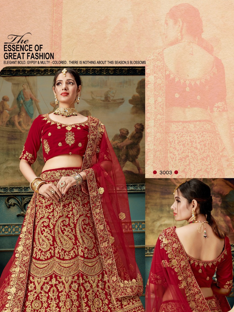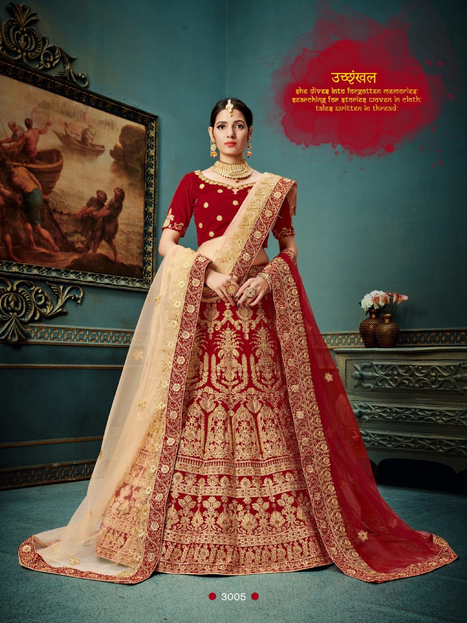 Umika Suhagan Vol 3 Velvet Fabrics Bridal Concept New Catalog With Double Dupatta And Purse Lehenga